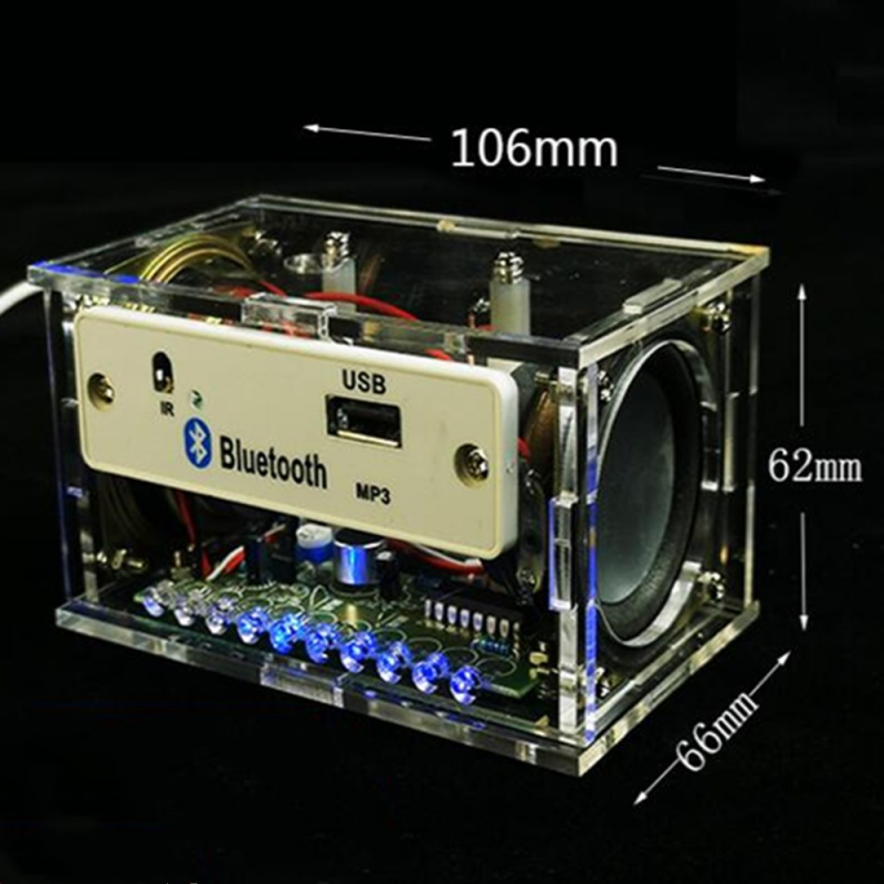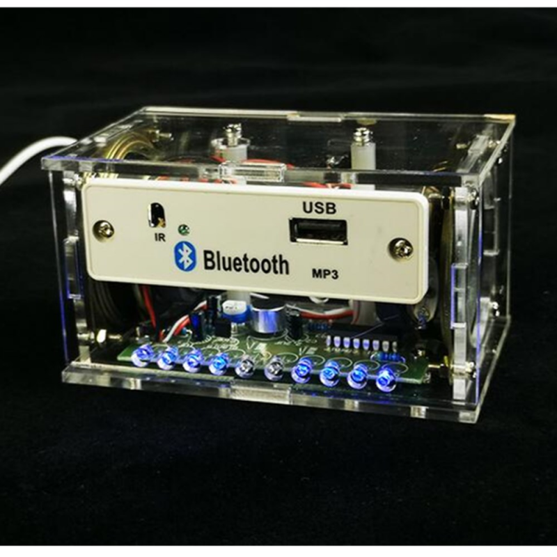 Все детали должны быть установлены самостоятельно. Внешняя крышка прозрачная, если бумага оторвана. Весь комплект динамиков Bluetooth оснащен usb-шнуром питания, а монтажная плата Bluetooth хорошо сварена. Вам нужно только подключить кабель и собрать звуковую панель управления. Источник питания может питаться от зарядного устройства на мобильный телефон или компьютера 5 В. Качество звука лучше при использовании питания 2A.