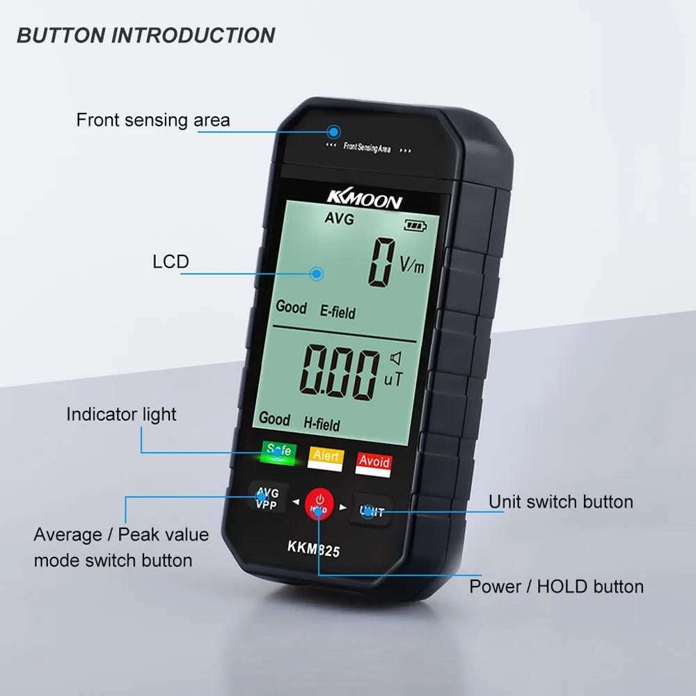 Детектор электромагнитного излучения KKMOON KKM825, Электрический полевой прибор для проверки магнитного поля, радиоиспытательный измеритель уровня звуковой светильник вой сигнализации