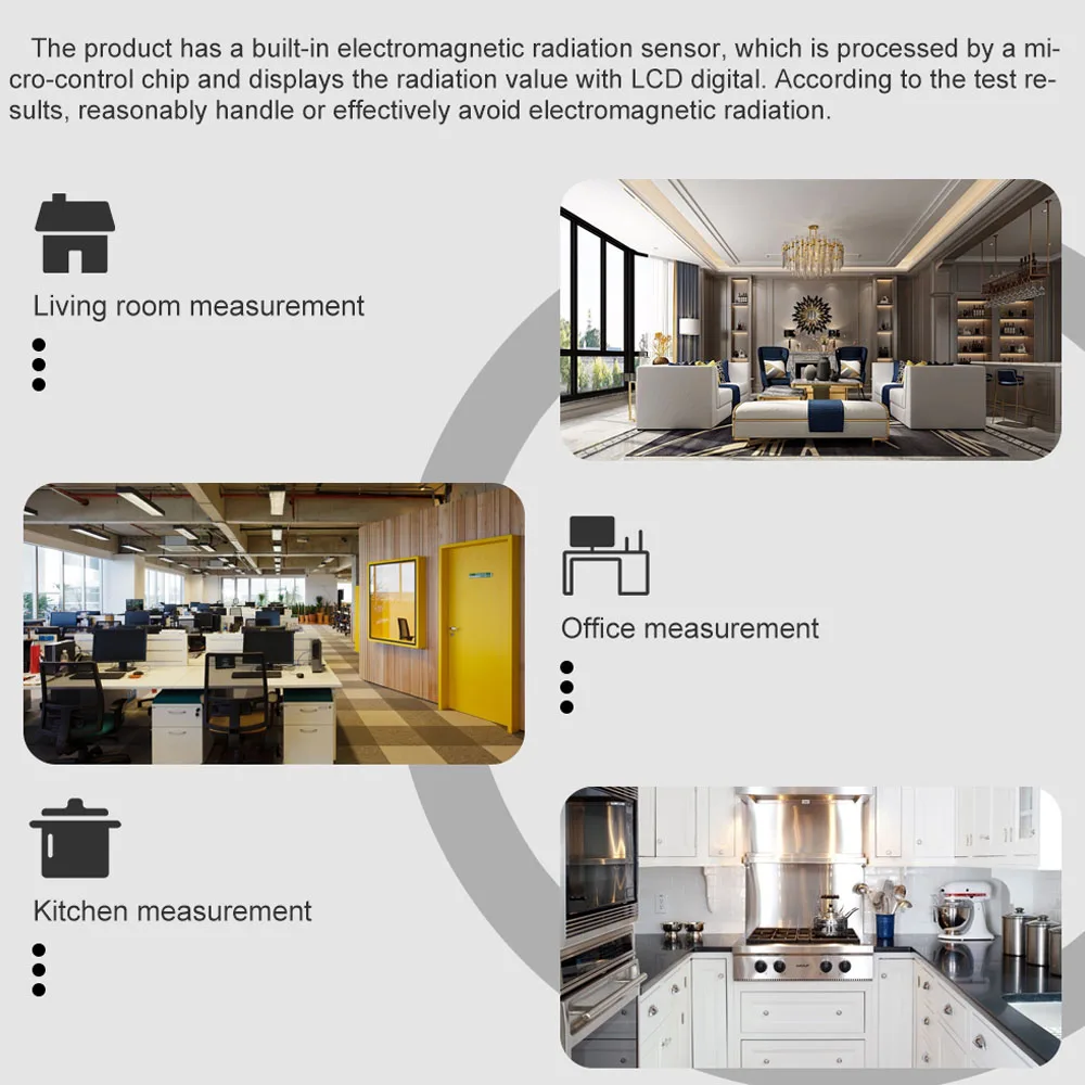 Wide applications: This tester can be used for electromagnetic radiation monitoring of House and apartment, office, outdoor and industrial site, electromagnetic radiation test of mobilephone, computers, TV set, refrigerator and high voltage cable radiation test, radiation protections product test such as test effects of radiation proof clothes, radiation proof film and other prevents.