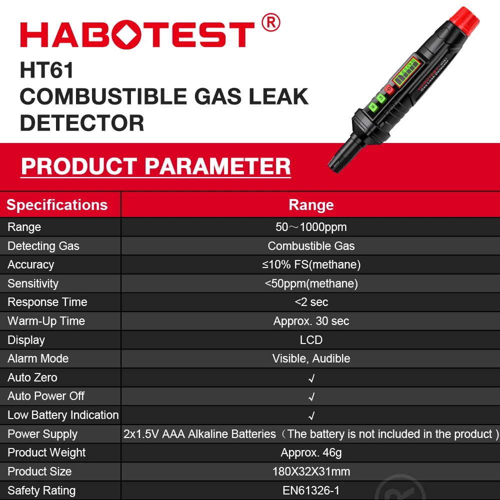Детектор утечки газа, детектор горючих газов HT59 HT60 HT61 0-1000PPM звуковой и экранный мини-детектор газа для природного метана