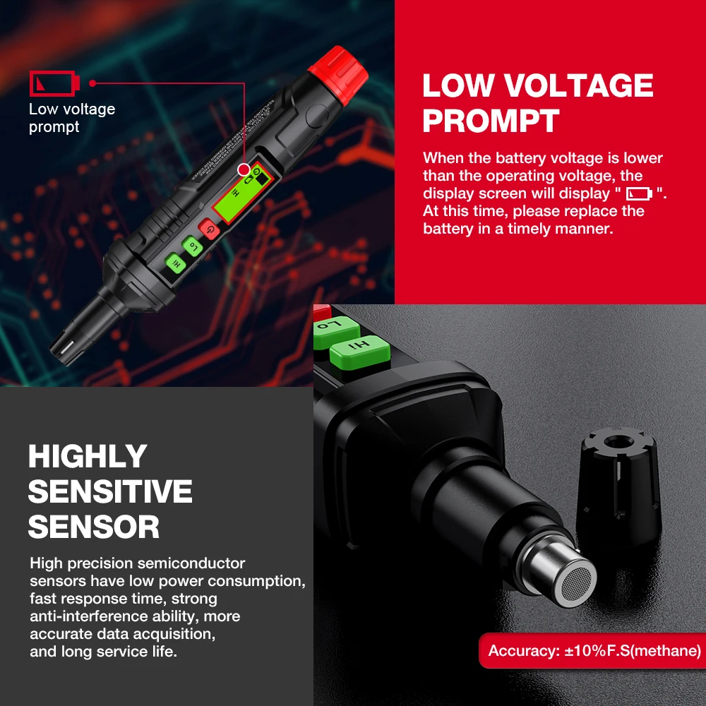 Диапазон обнаружения: 50 ~ 1000ppm (метан)