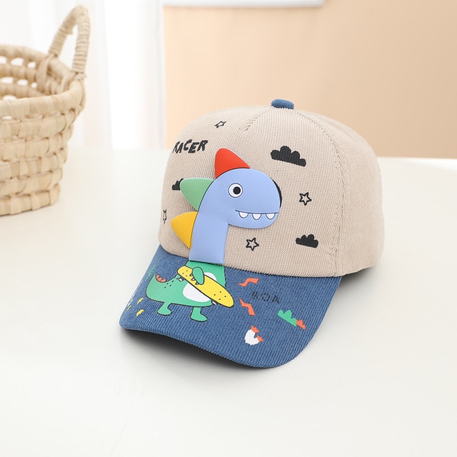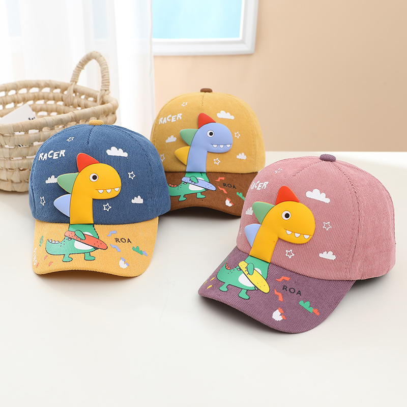 Детская бейсболка с мультяшным динозавром, милая детская шапка от солнца с животными, Весенняя Вельветовая уличная Кепка с козырьком для мальчиков и девочек, кепка, шапочка