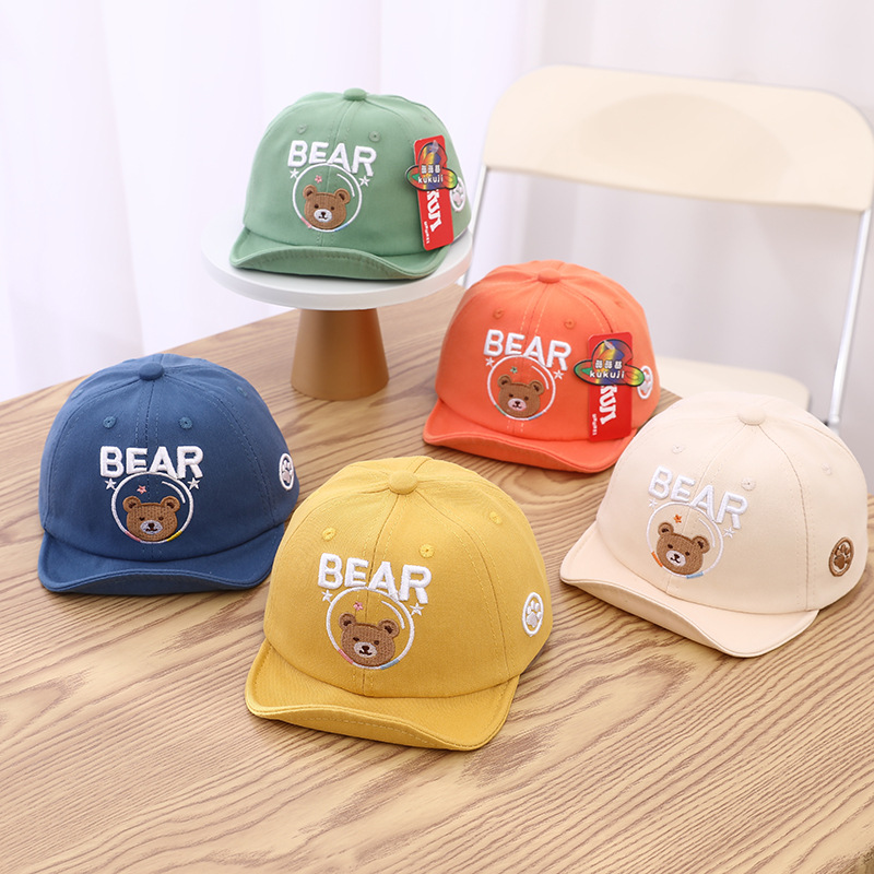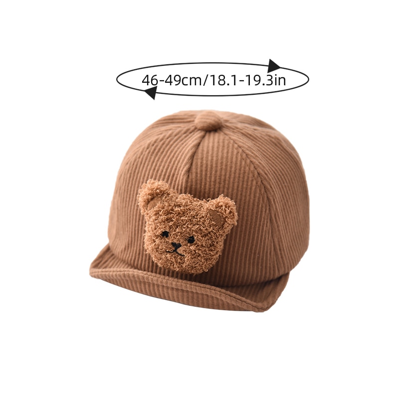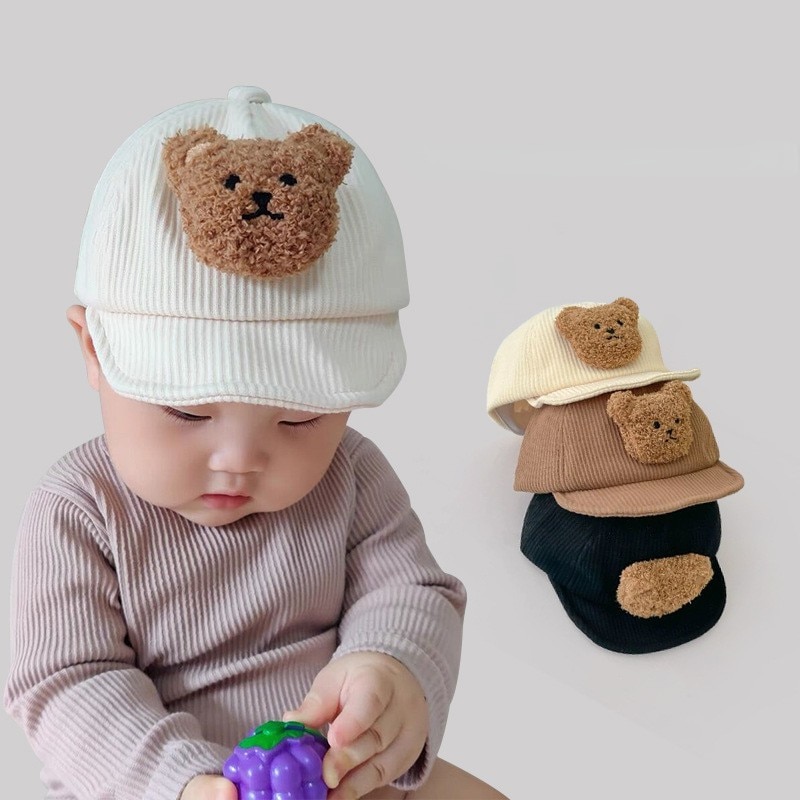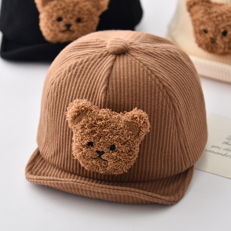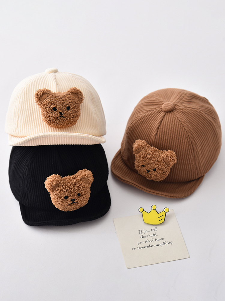 Детская бейсболка с мультяшным медведем для мальчиков и девочек, вельветовые кепки, корейские однотонные регулируемые детские шляпы от солнца