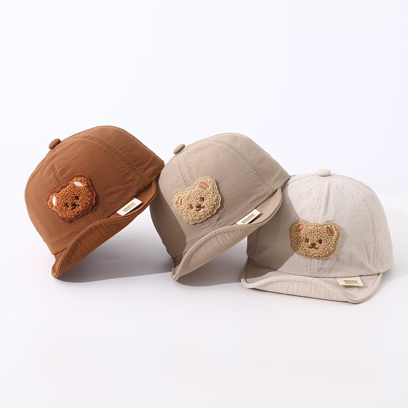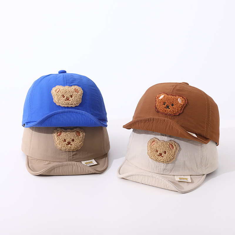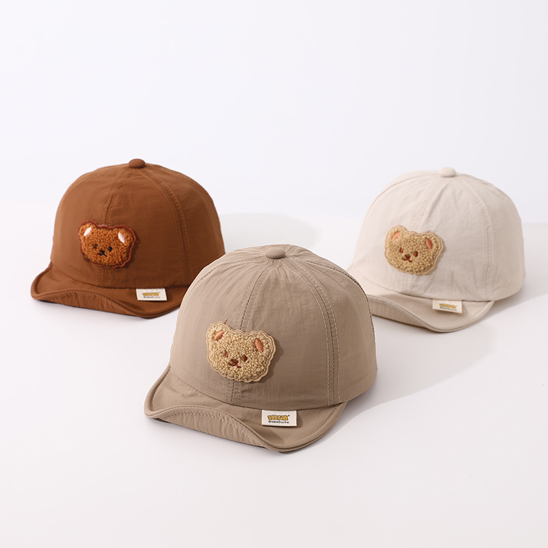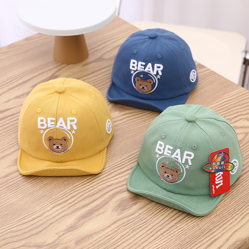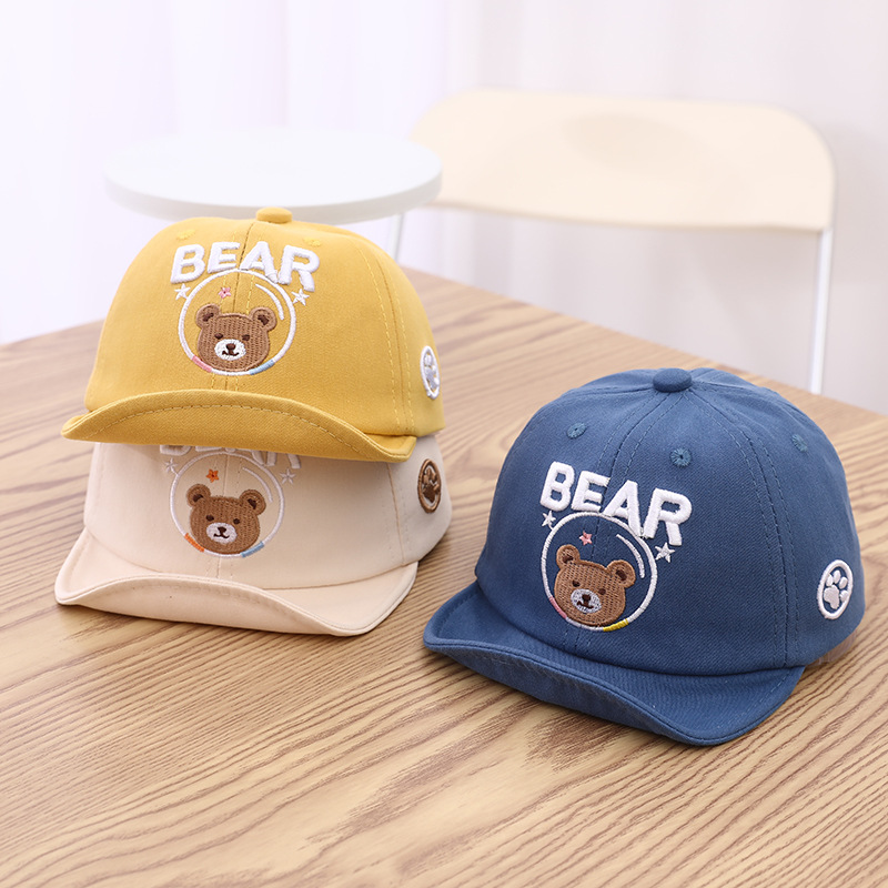 Детская бейсболка с мультяшным медведем для мальчиков и девочек, вельветовые кепки, корейские однотонные регулируемые детские шляпы от солнца