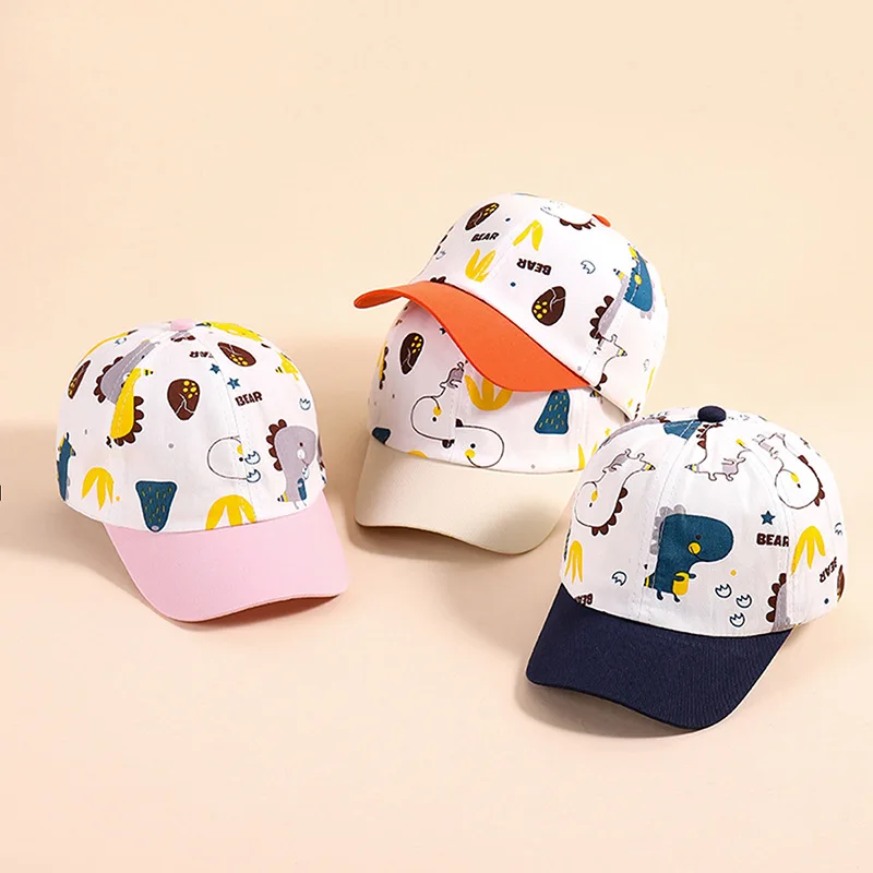 Детская бейсбольная шляпа с рисунком динозавра, детская трикотажная Регулируемая летняя Солнцезащитная шляпа из хлопка