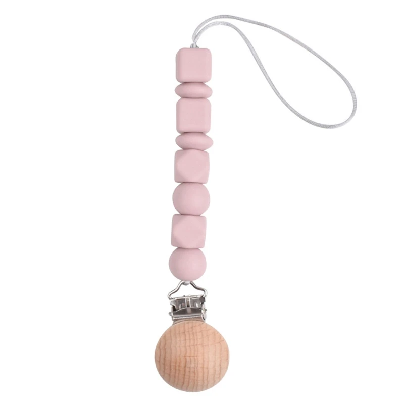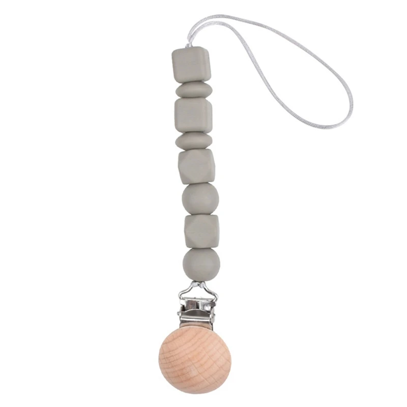 Детская пустышка цепочка зажим для ухода Прорезыватель держатель силиконовые бусины цепь деревянный зажим DIY держатель для соски-пустышки поводок ремень
