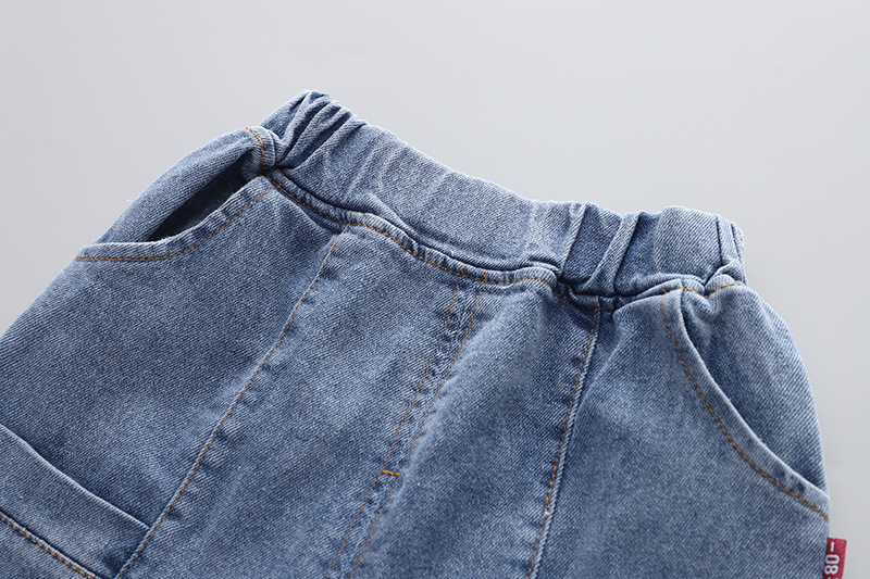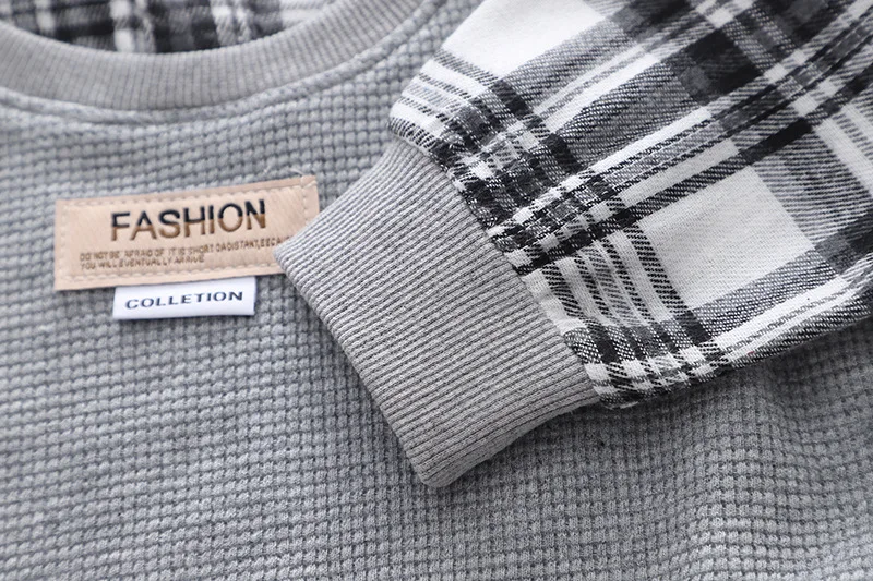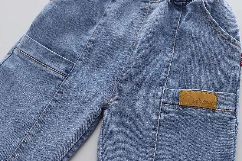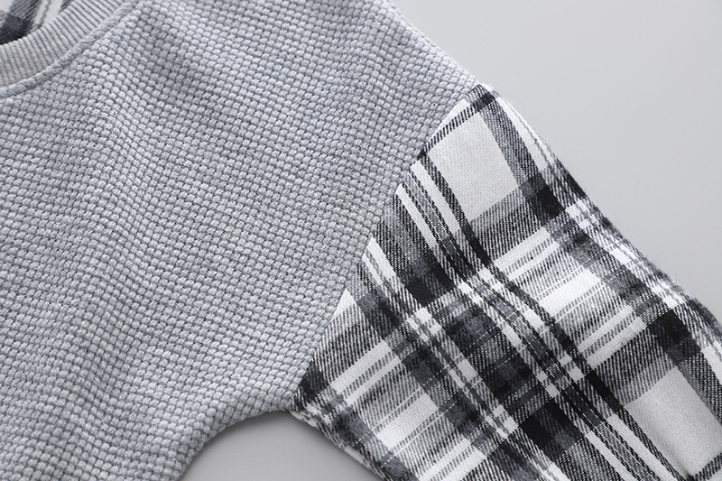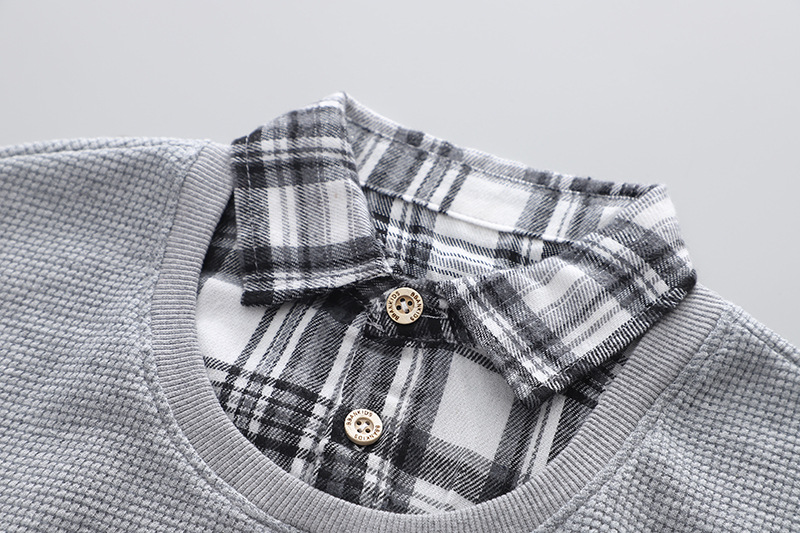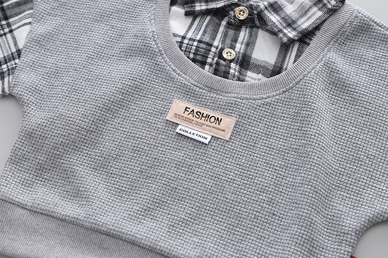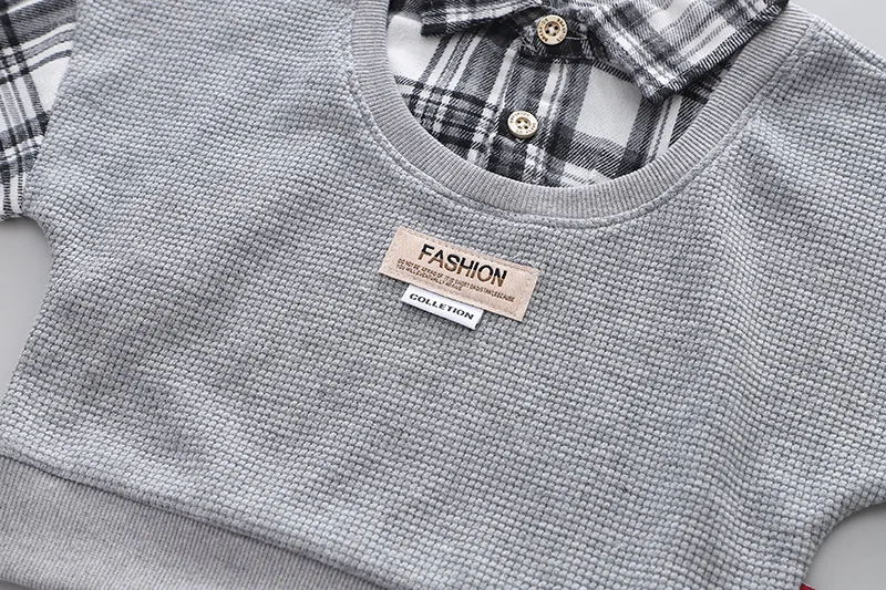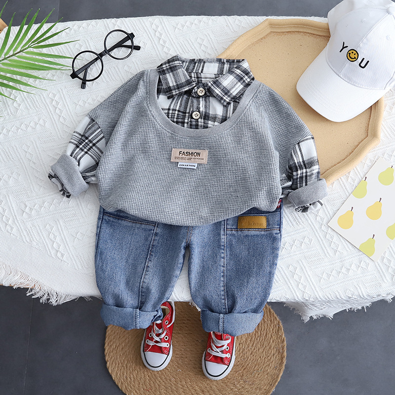 Детская эксклюзивная одежда на весну и осень, повседневные клетчатые лоскутные Футболки с отложным воротником и длинными рукавами и джинсы, комплект одежды для маленьких мальчиков