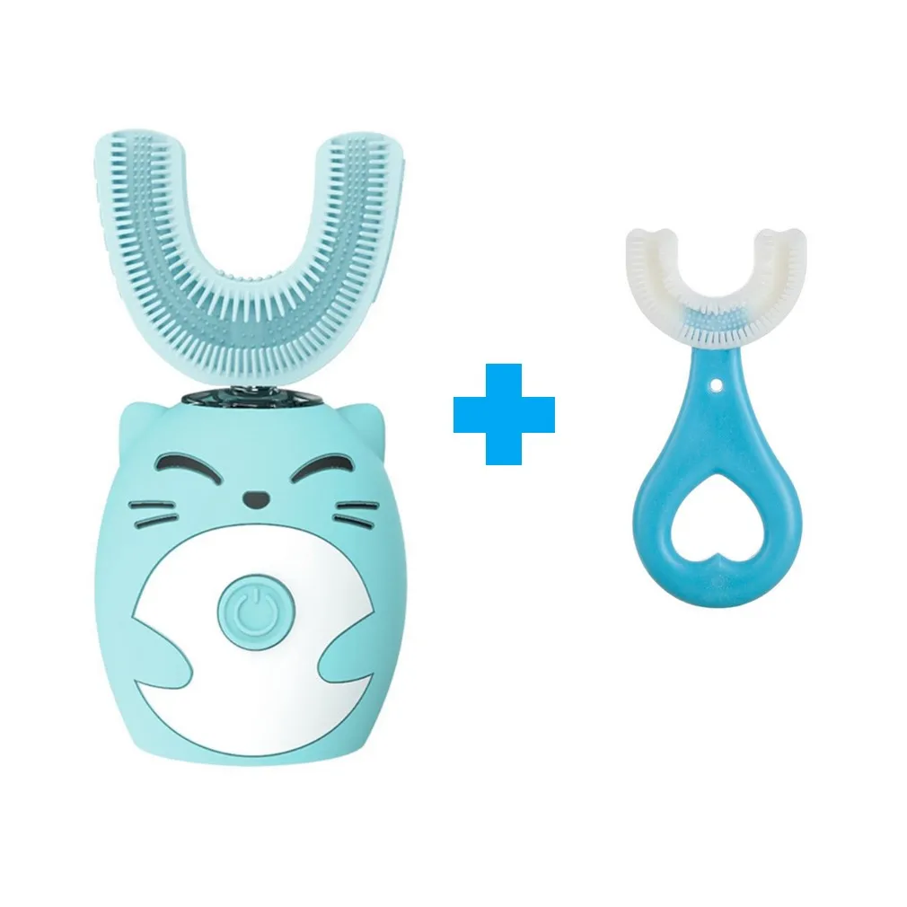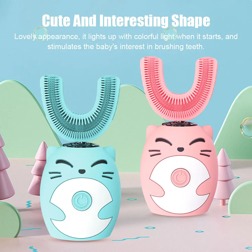 Детская электрическая зубная щетка U-образной формы, умная силиконовая автоматическая ультразвуковая зубная щетка с поворотом на 360 градусов, милый мультяшный подарок для детей