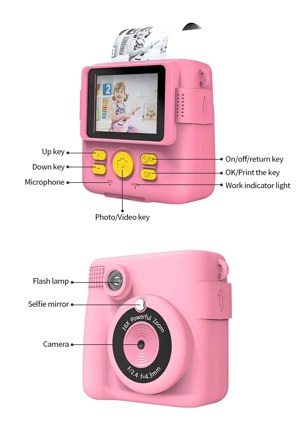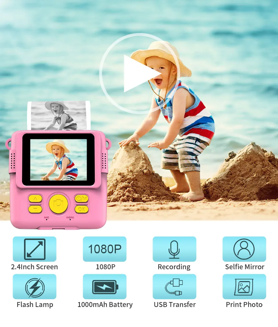 Детская фотокамера с заполняющим светом, ночная фотография, игрушка для девочек, подарок на день рождения, 1080P HD, видео, мгновенная фотокамера для детей