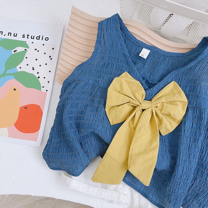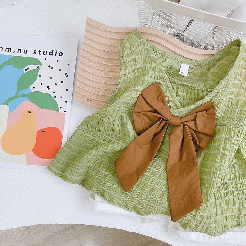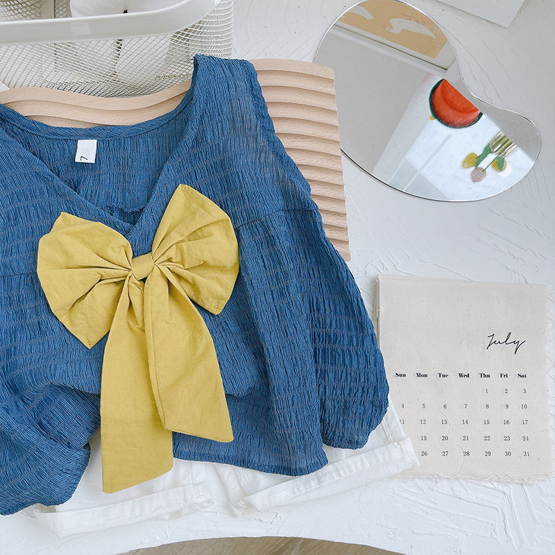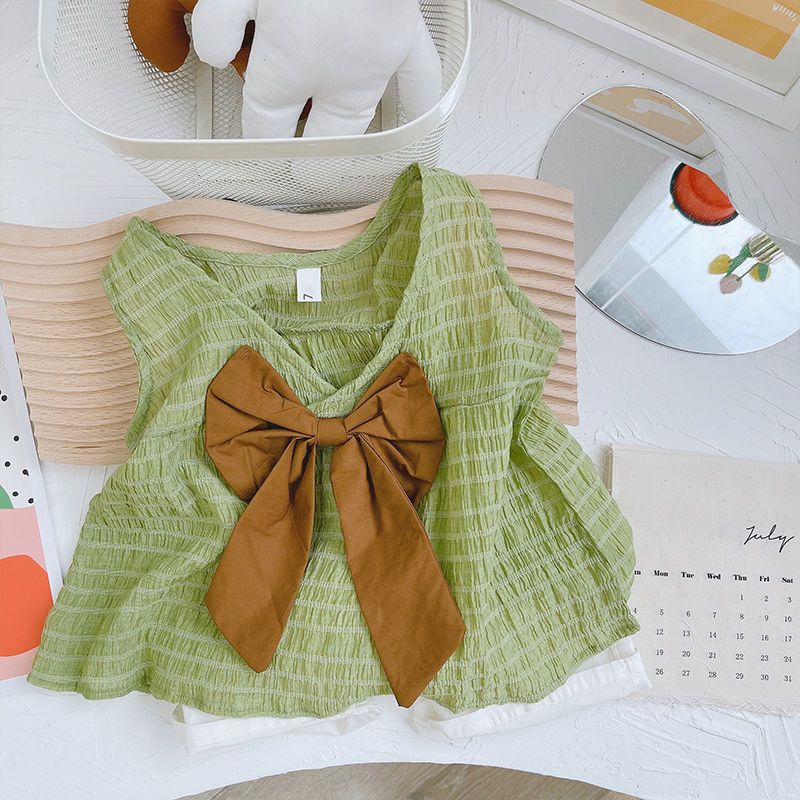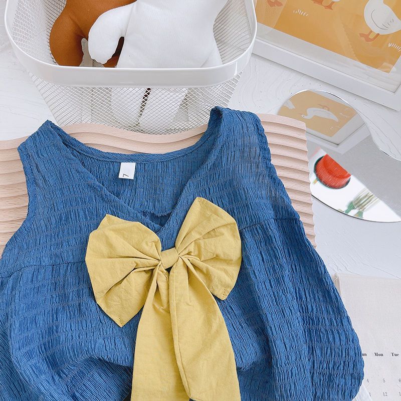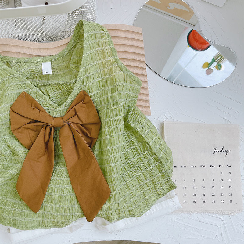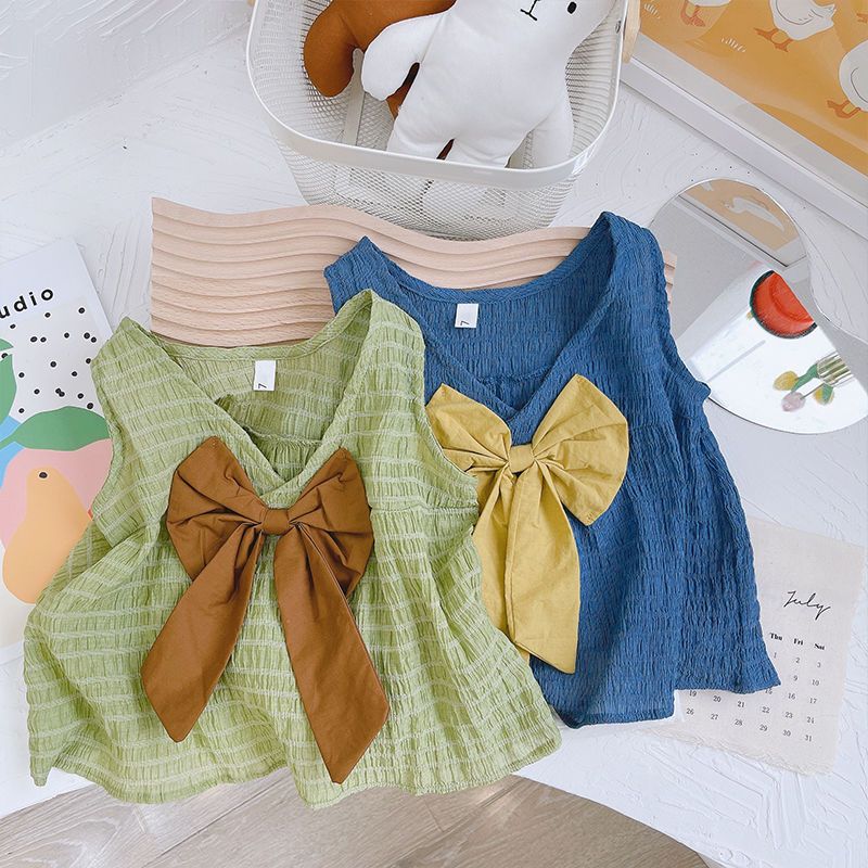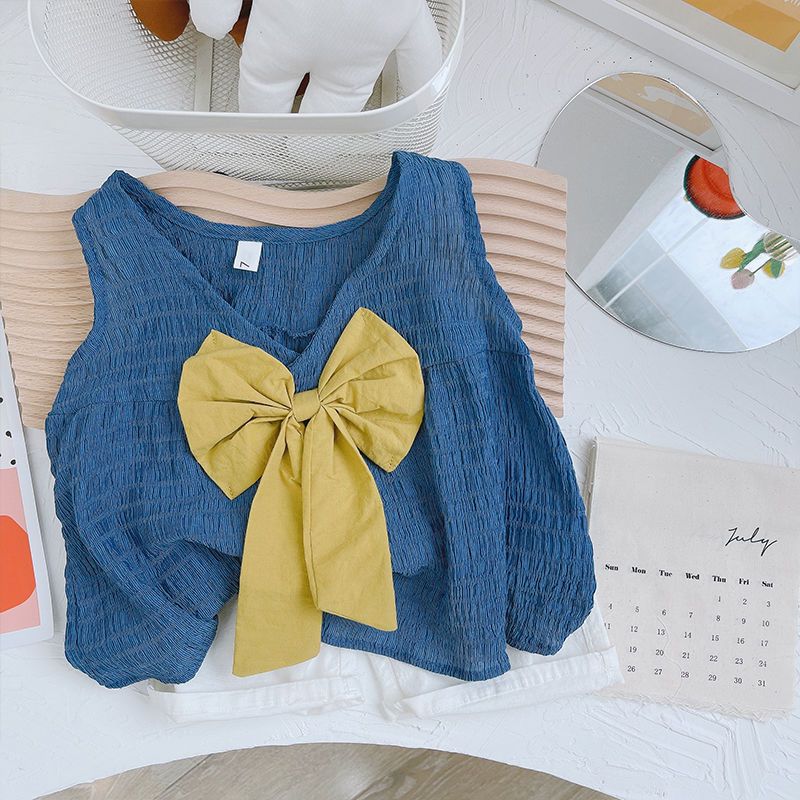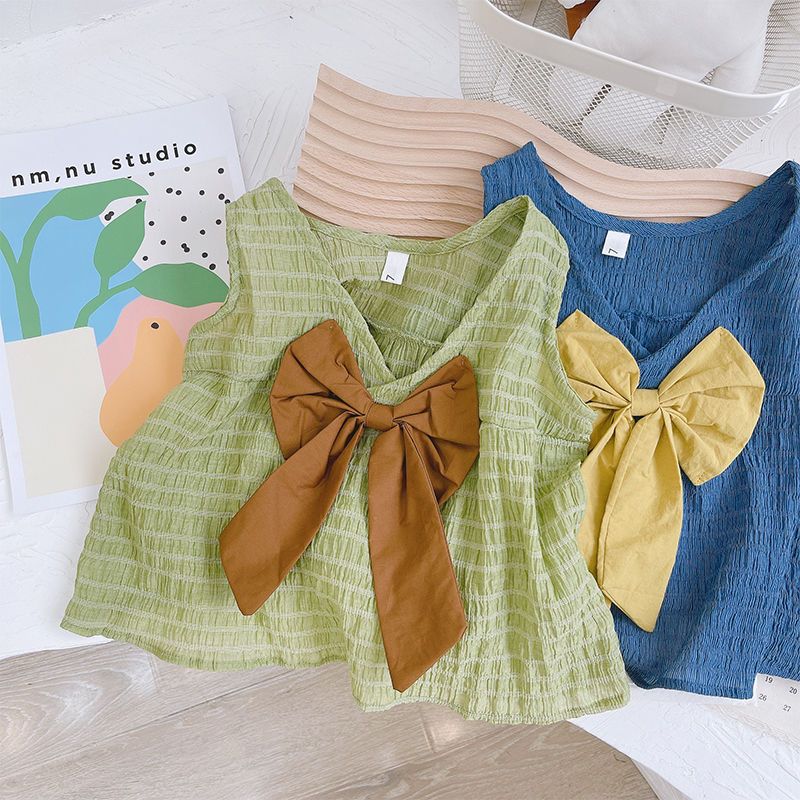 Детская футболка без рукавов, с V-образным вырезом и бантом