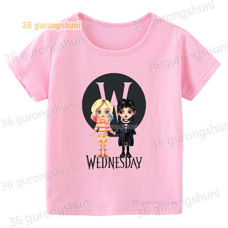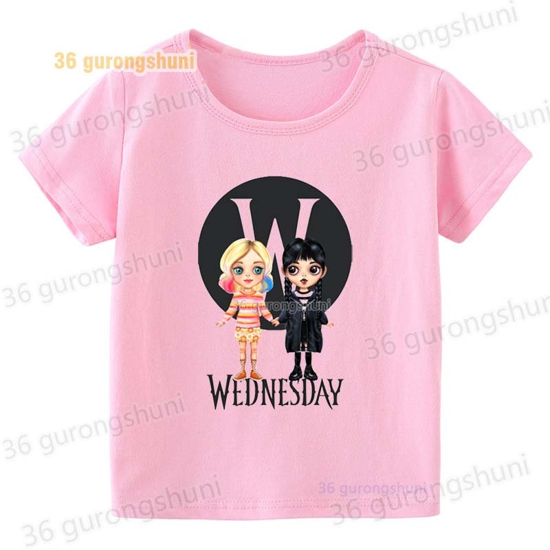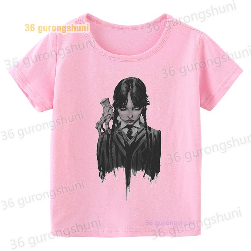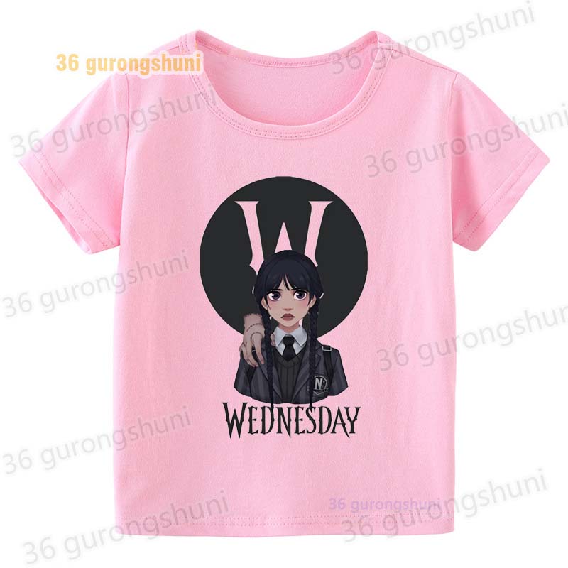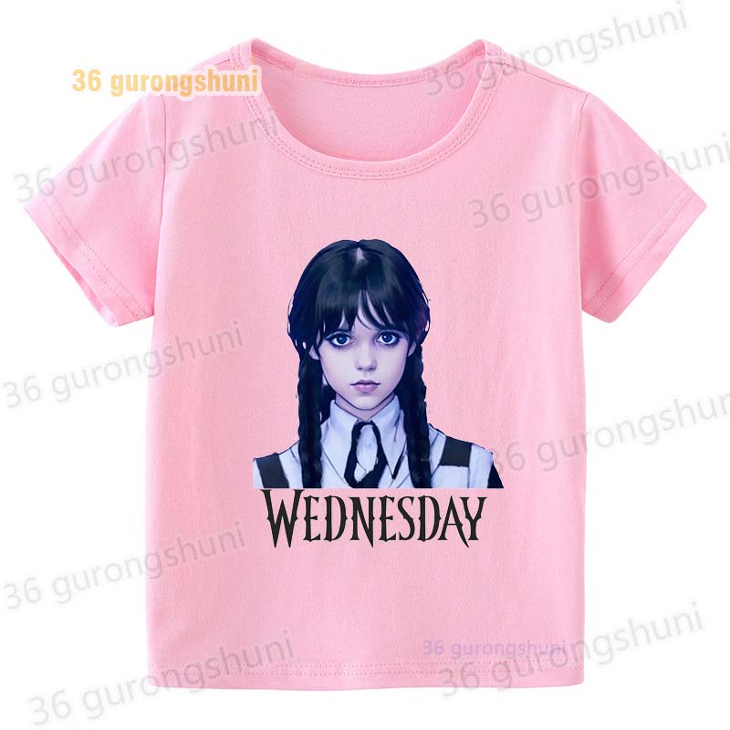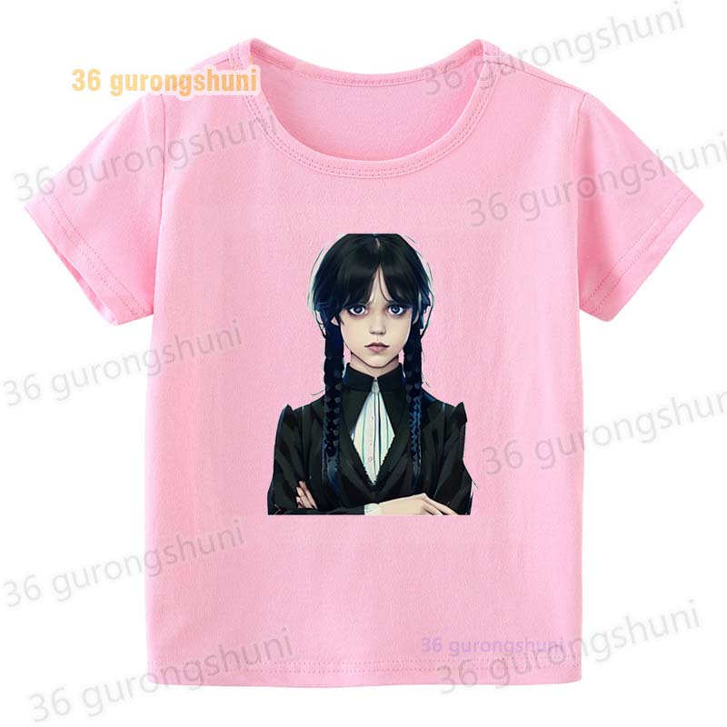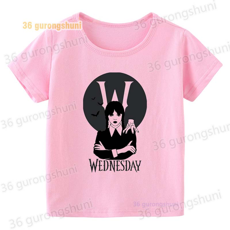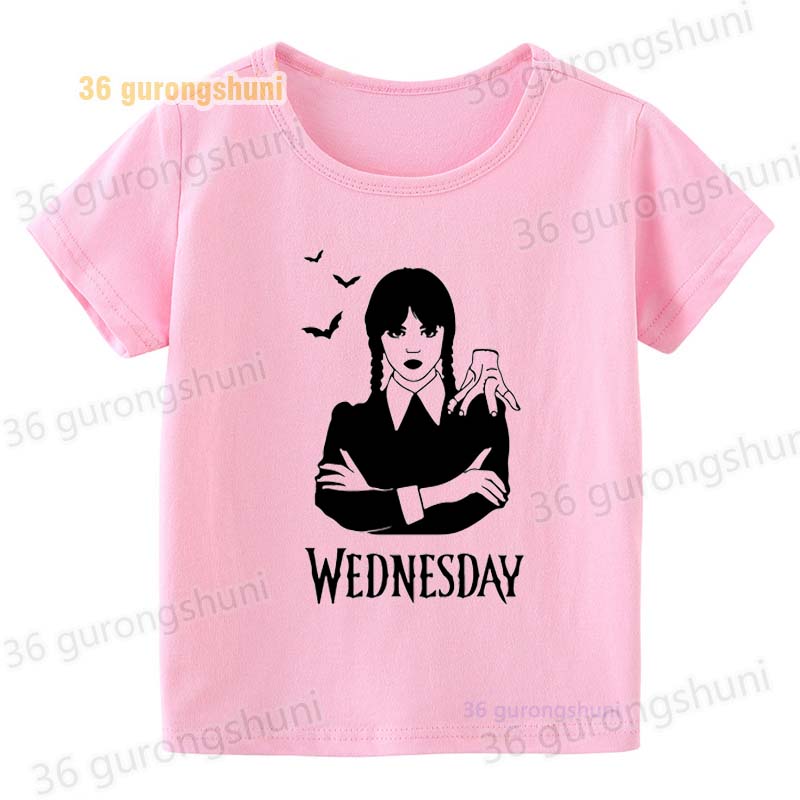 Детская футболка для девочек, одежда со смешными мотивами, детская одежда для девочек, детская футболка, футболка с графическим рисунком, милые розовые футболки Wednesday Addams mercredi miercoles mercoledi addam enfan