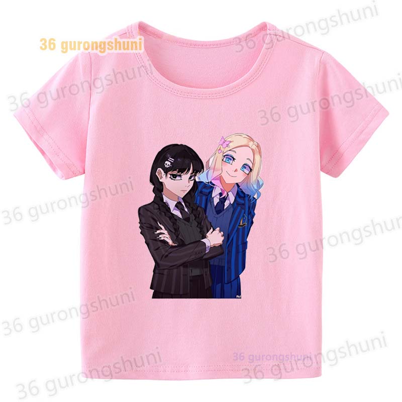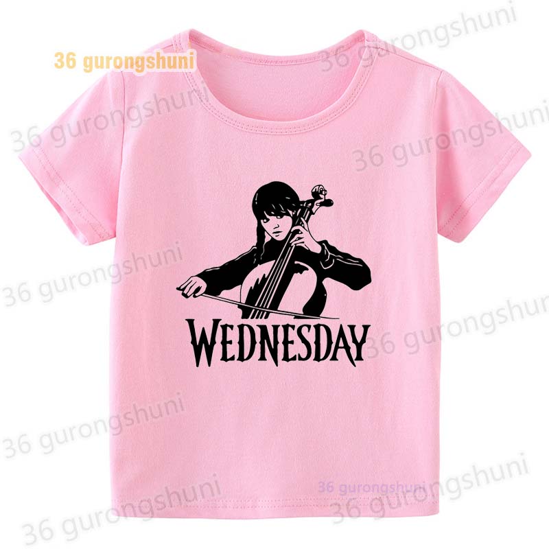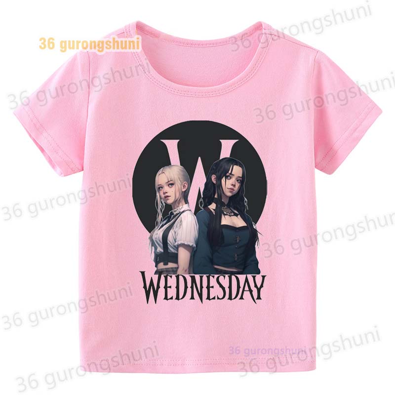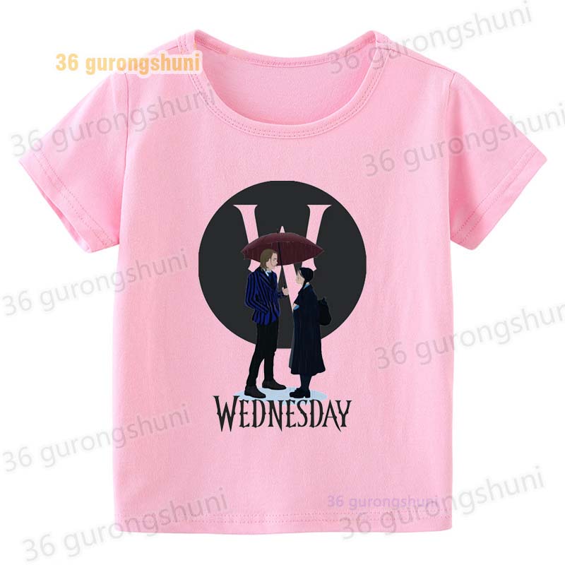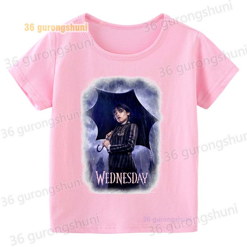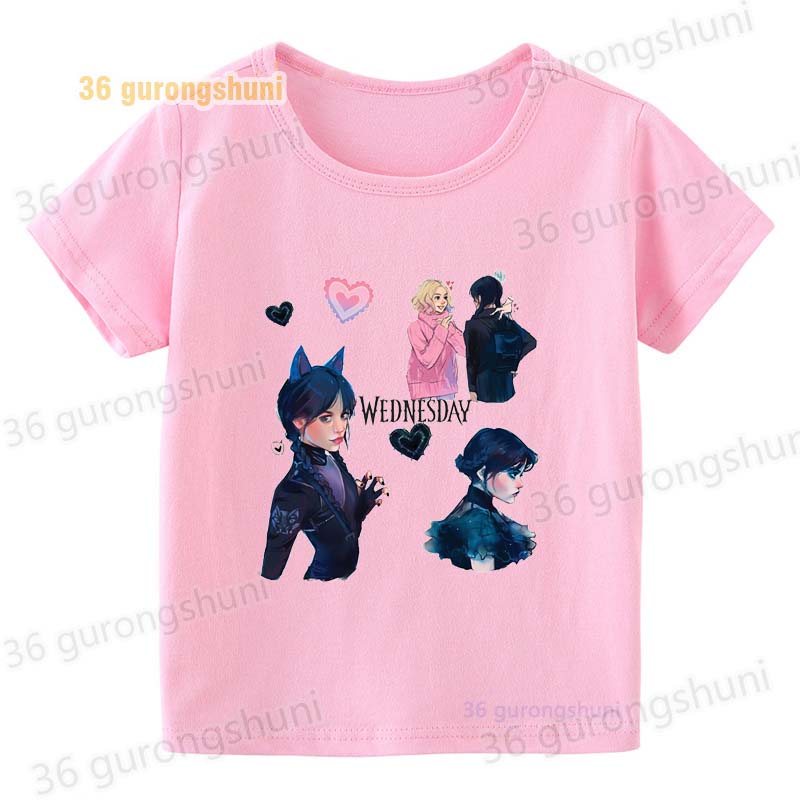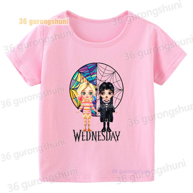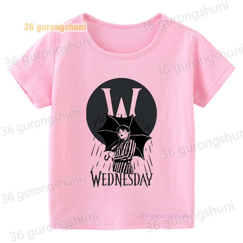 Детская футболка для девочек, одежда со смешными мотивами, детская одежда для девочек, детская футболка, футболка с графическим рисунком, милые розовые футболки Wednesday Addams mercredi miercoles mercoledi addam enfan