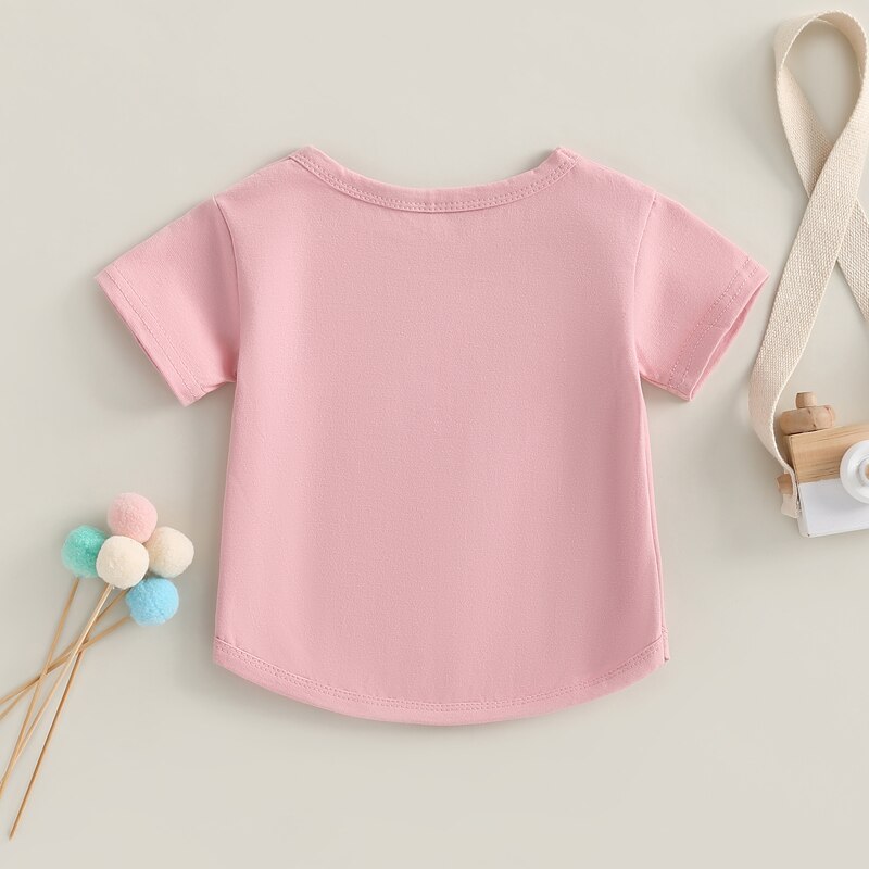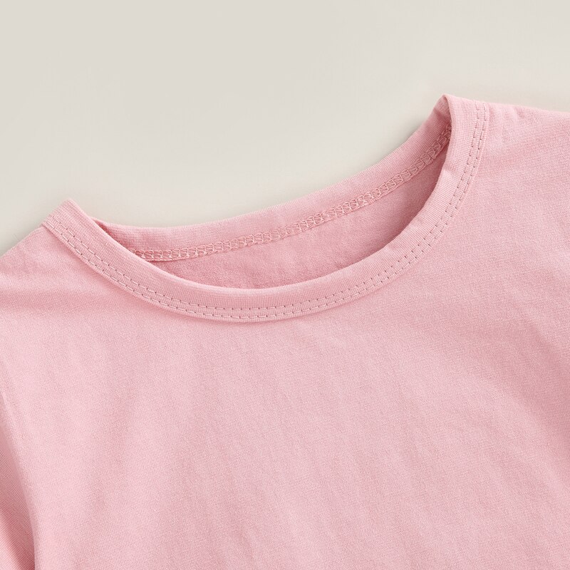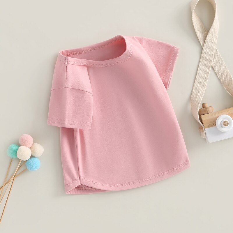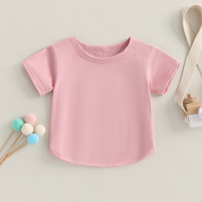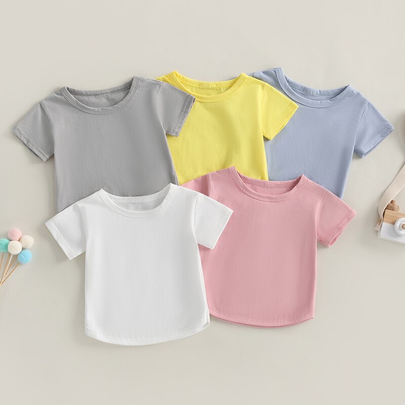 Описание: Детская футболка для мальчиков и девочек, Повседневная летняя однотонная Свободная рубашка-пуловер с круглым вырезом и коротким рукавом для малышей