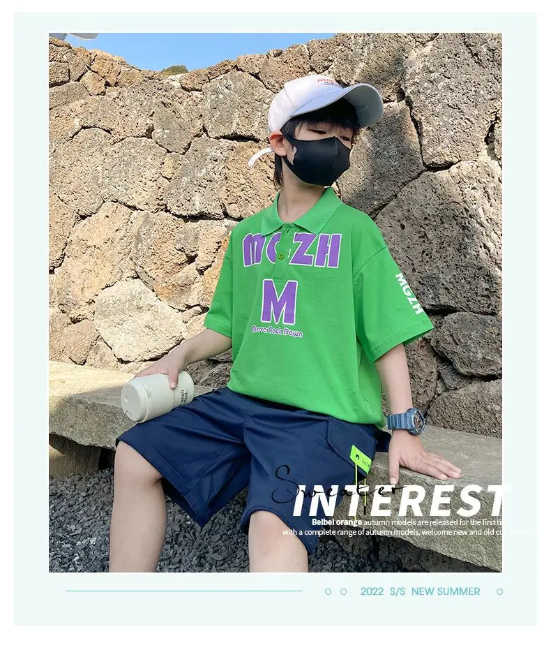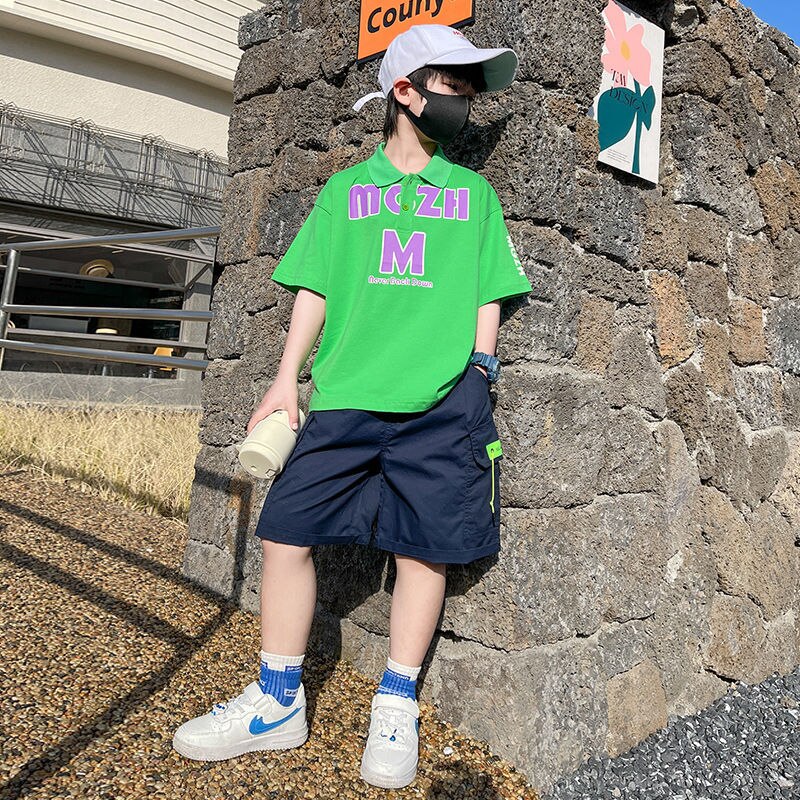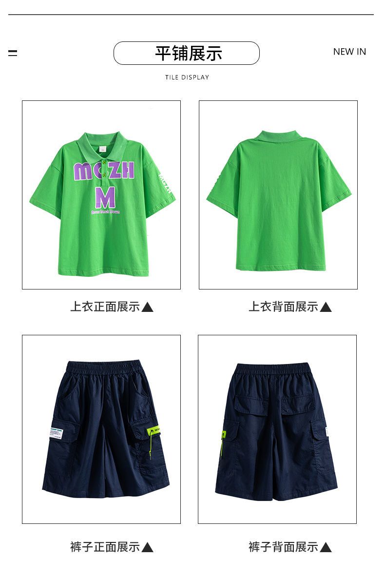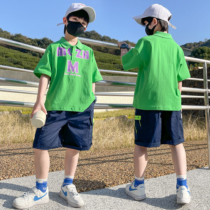 2023 Модный летний костюм для мальчиков, детская зеленая белая футболка с коротким рукавом + шорты, костюм из 2 предметов 8 9 10 12 13 14 лет, хлопковая детская одежда