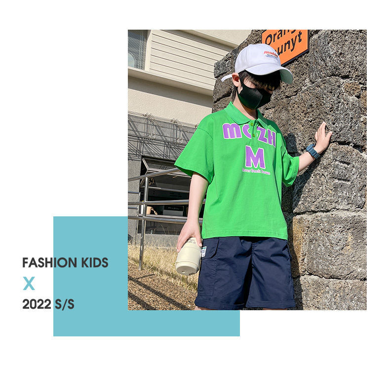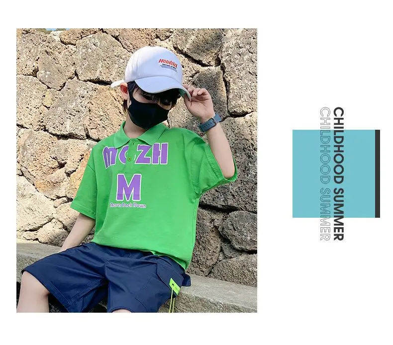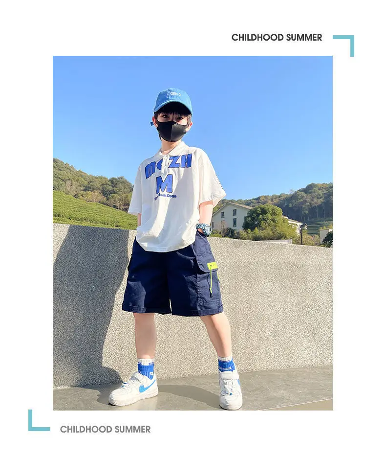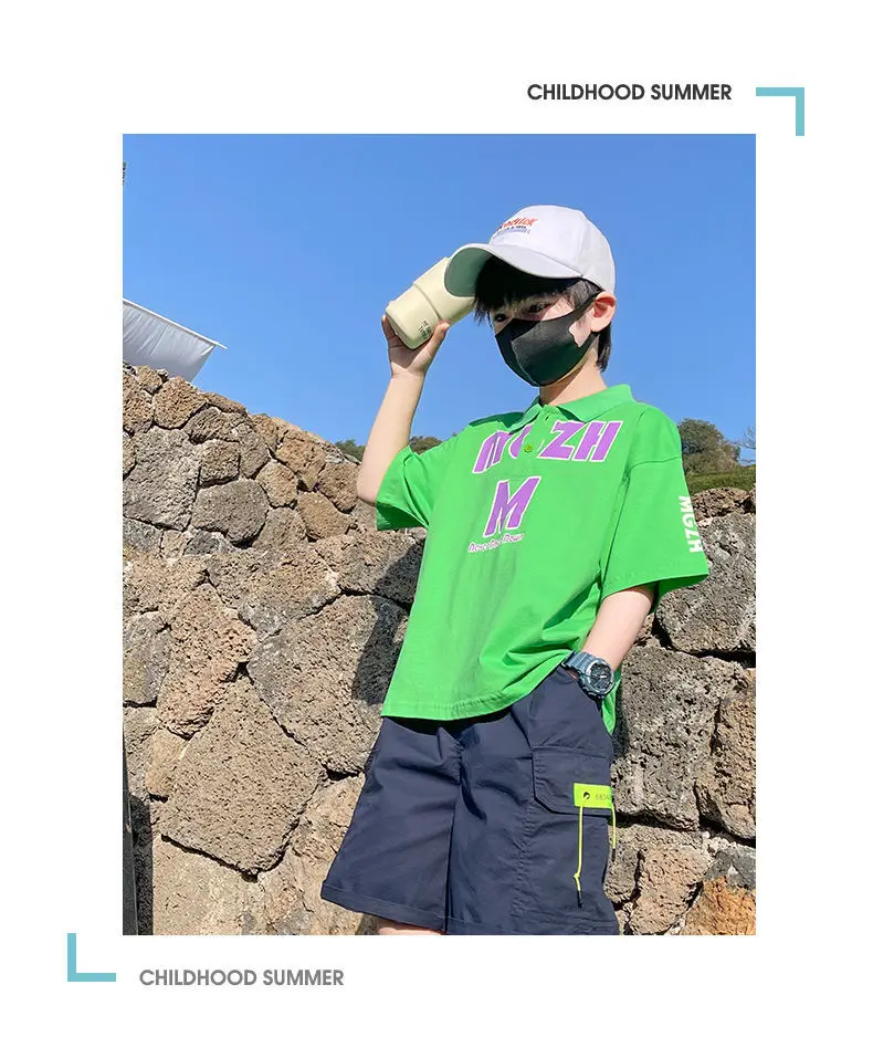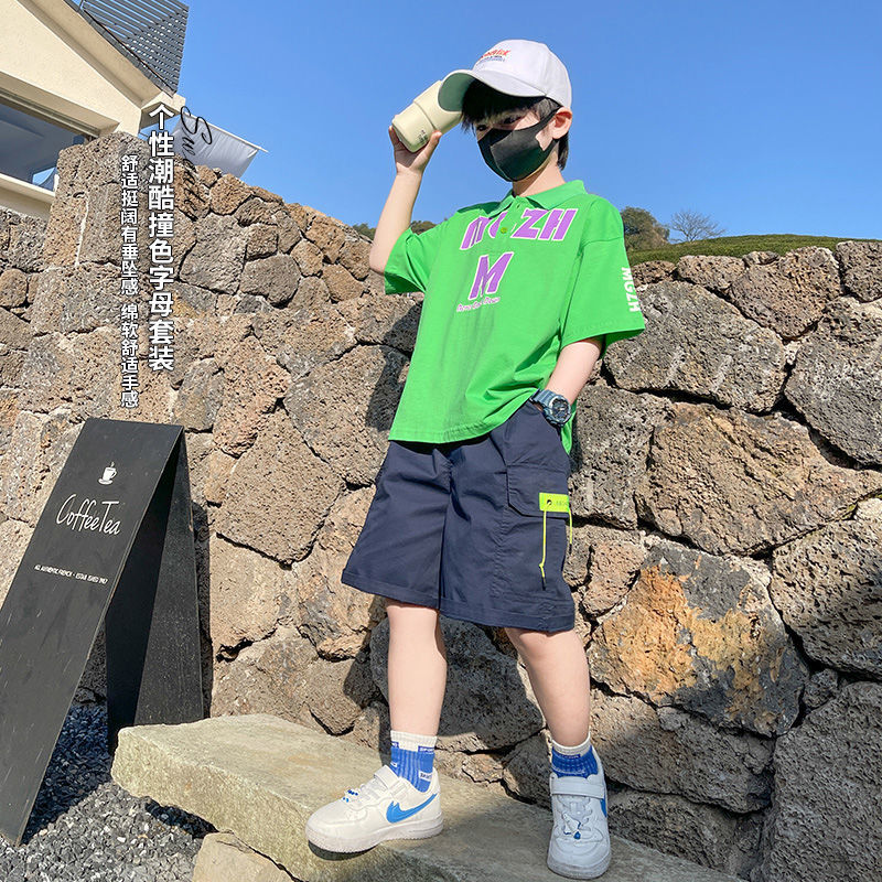 2023 Модный летний костюм для мальчиков, детская зеленая белая футболка с коротким рукавом + шорты, костюм из 2 предметов 8 9 10 12 13 14 лет, хлопковая детская одежда