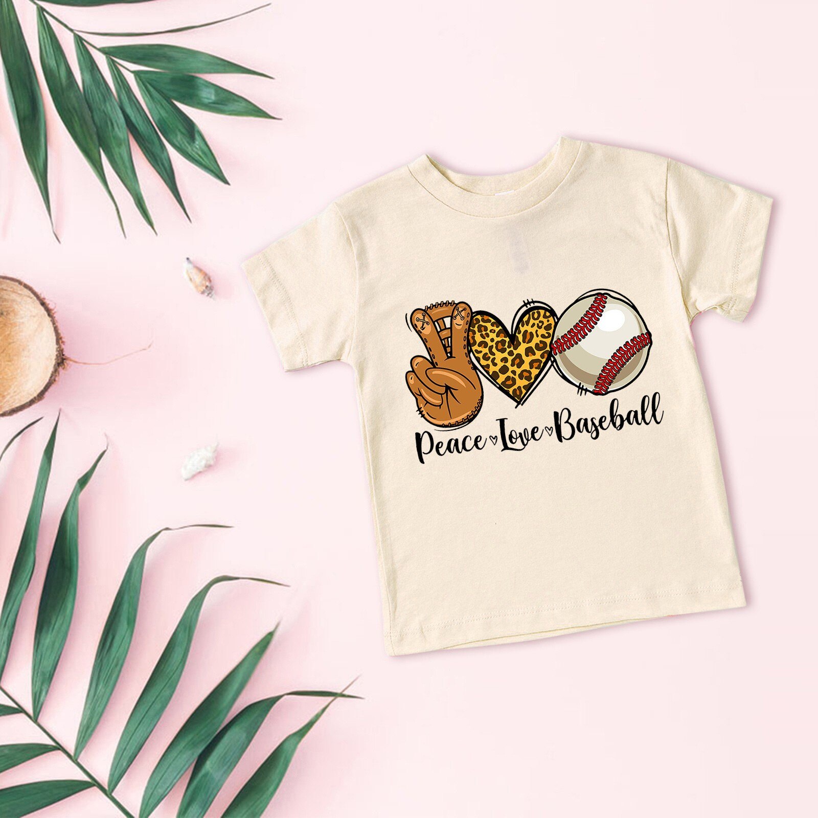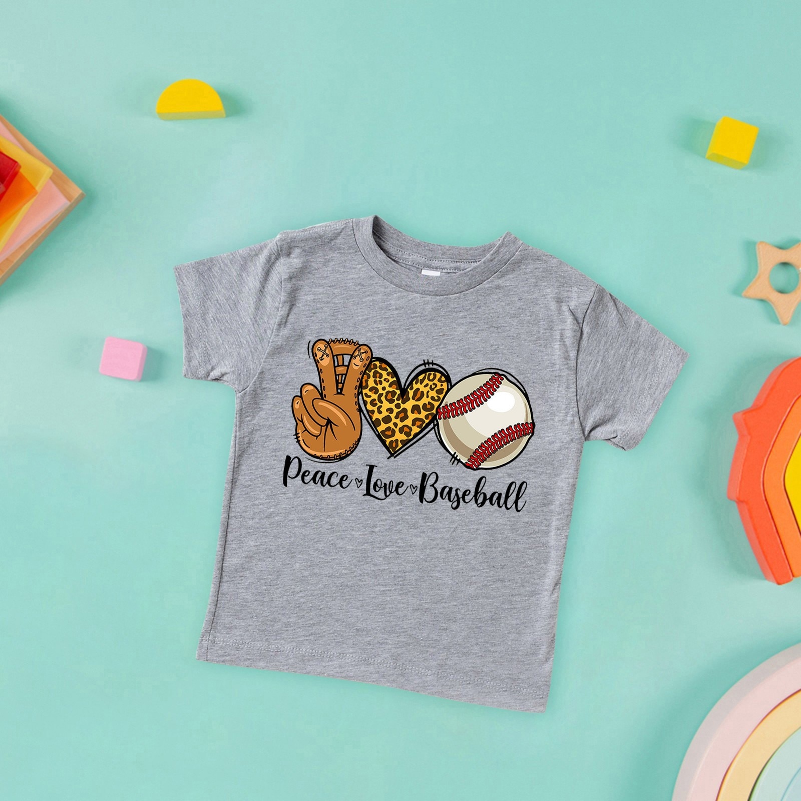 Детская футболка PEACE LOVE BASEBALL, футболка с круглым вырезом и короткими рукавами, от 3 до 14 лет, дети