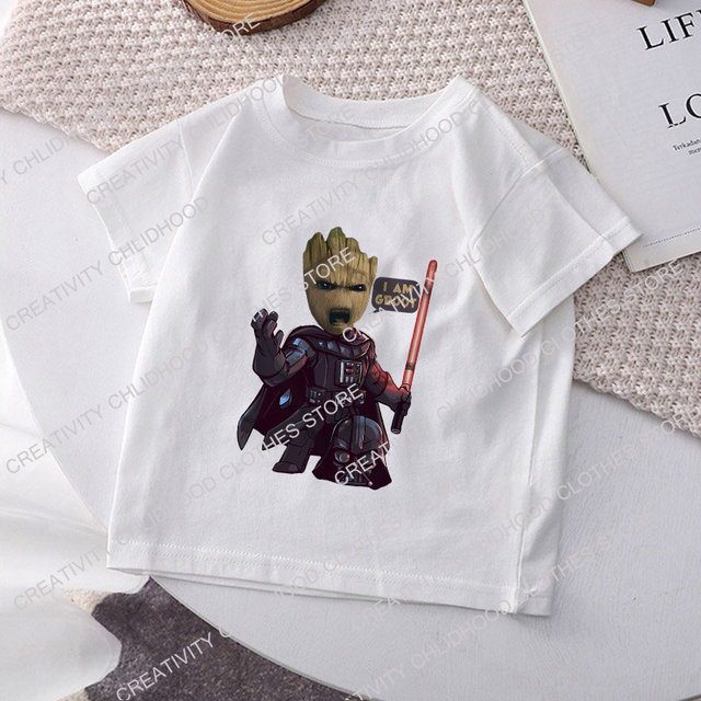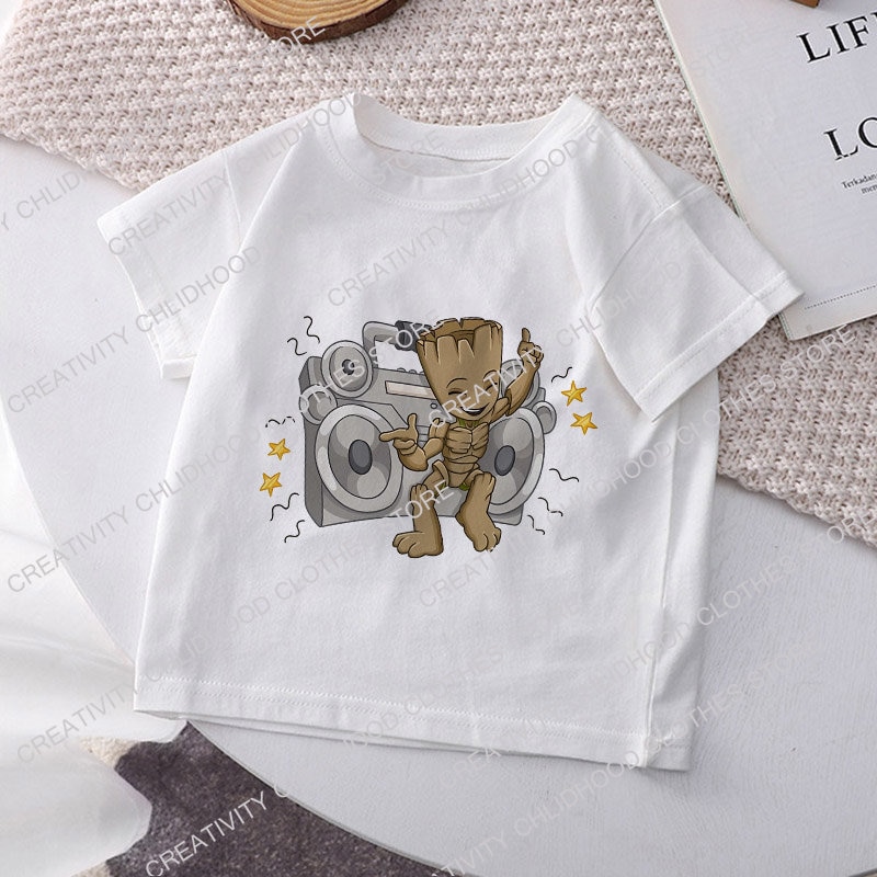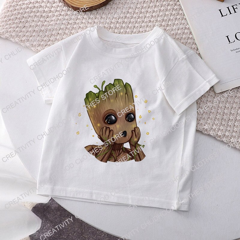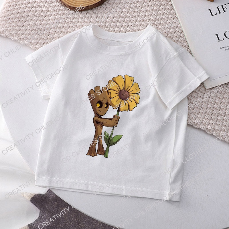 Детская футболка с принтом Грут, кавайная футболка с героями Marvel, повседневная одежда с цветами из мультфильмов, детская одежда с аниме, модные топы для девочек и мальчиков, уличная одежда