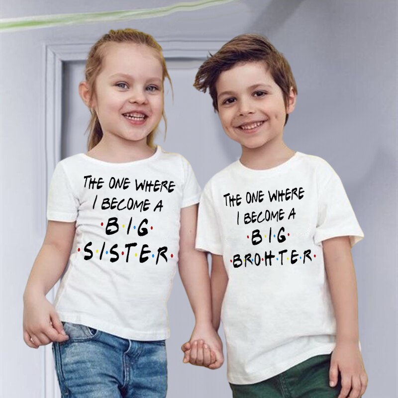 Детская футболка с принтом «один, где я становлюсь старшей сестрой/брат», Детская футболка для объявления ребенка беременности, Детская футболка, летняя одежда, подарки
