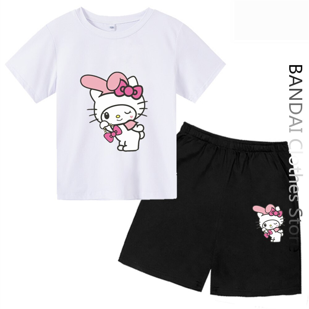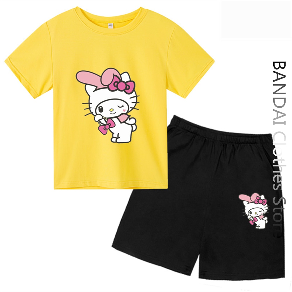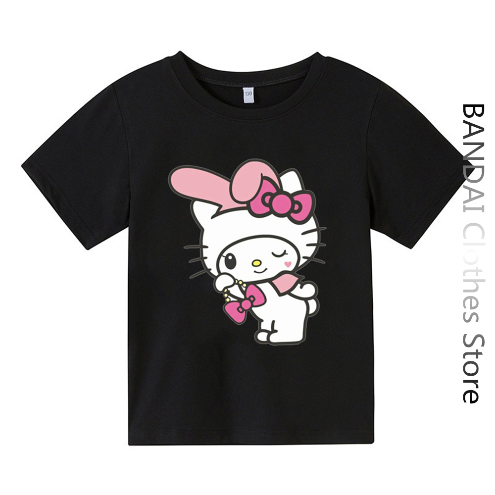 Детская футболка Sanrio с надписью «My Melody», летняя Женская Повседневная футболка с рисунком Hello Kitty и короткими рукавами, одежда для маленьких мальчиков и девочек