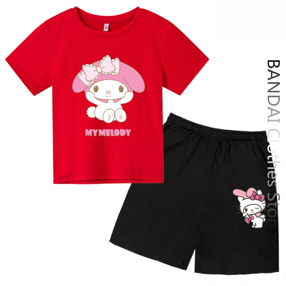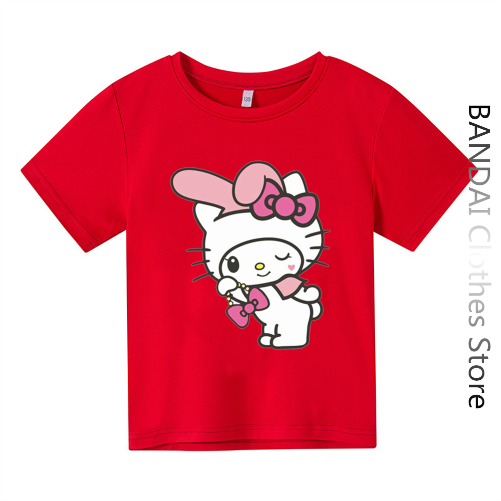 Детская футболка Sanrio с надписью «My Melody», летняя Женская Повседневная футболка с рисунком Hello Kitty и короткими рукавами, одежда для маленьких мальчиков и девочек