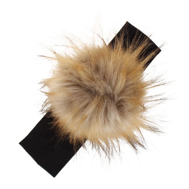 Детская Хлопковая эластичная повязка на голову с помпонами из искусственного меха енота