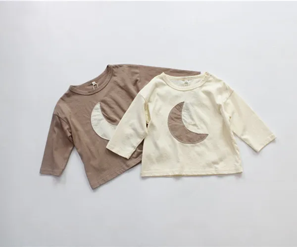 Детская Хлопковая футболка с длинным рукавом, с принтом Луны