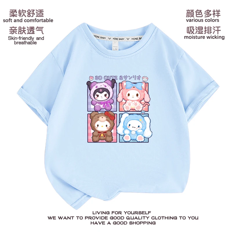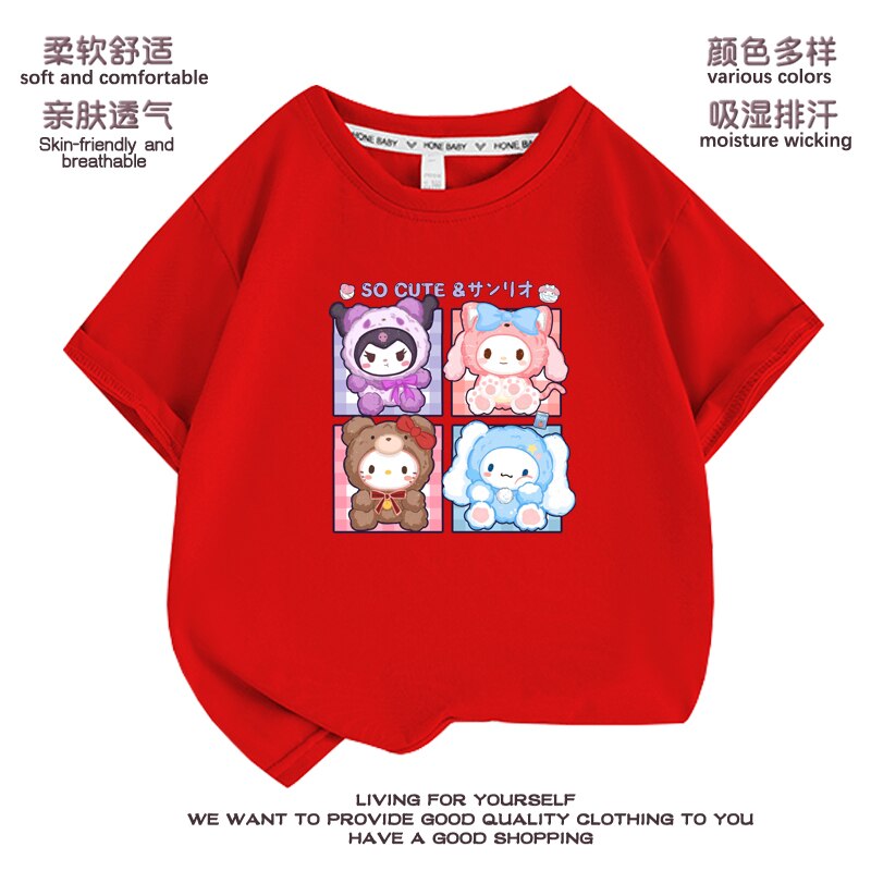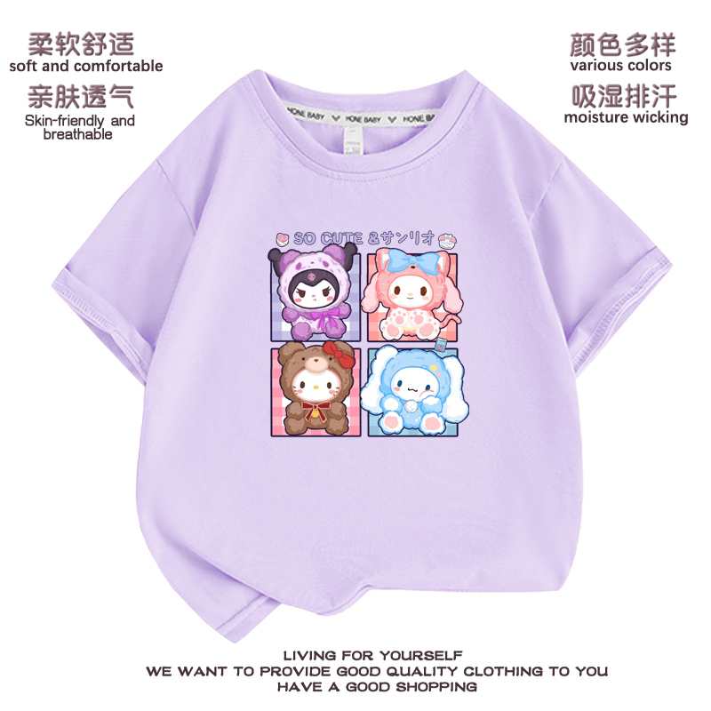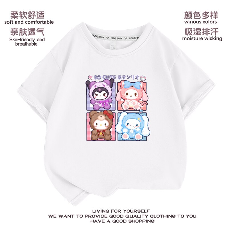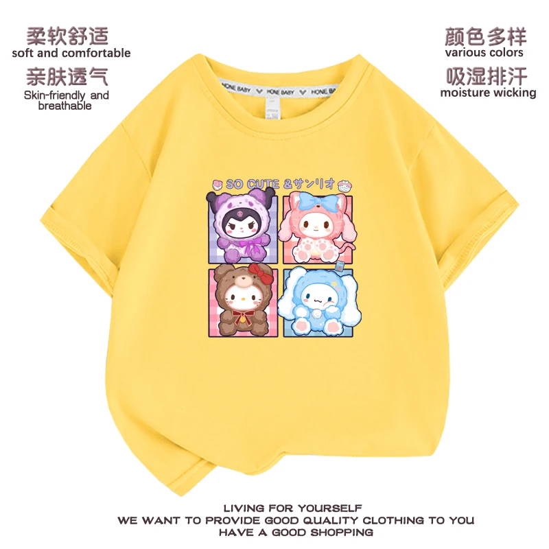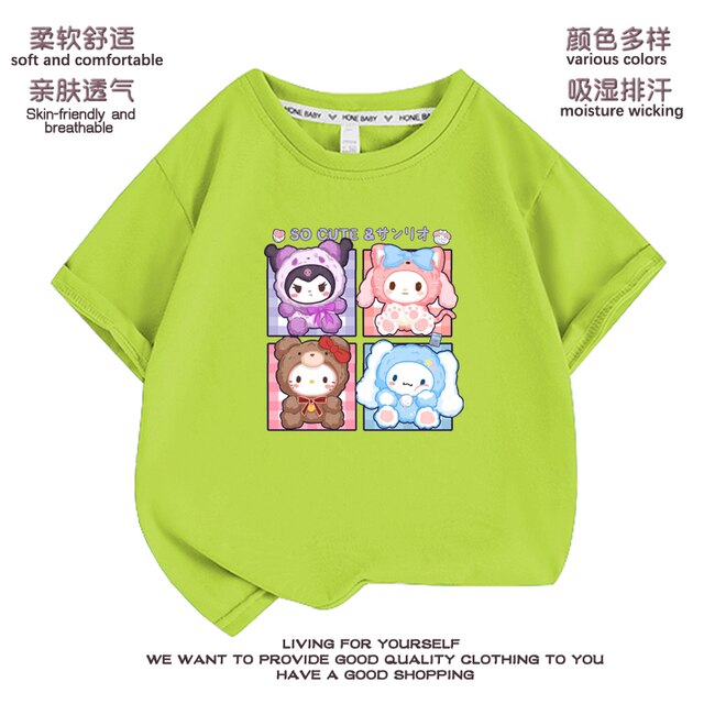 Детская Хлопковая футболка с рисунком аниме My Melody Cinnamoroll Kuromi Purin Dog, симпатичная летняя свободная мультяшная футболка разных цветов с коротким рукавом
