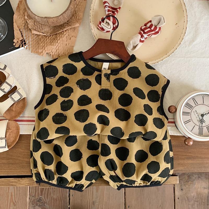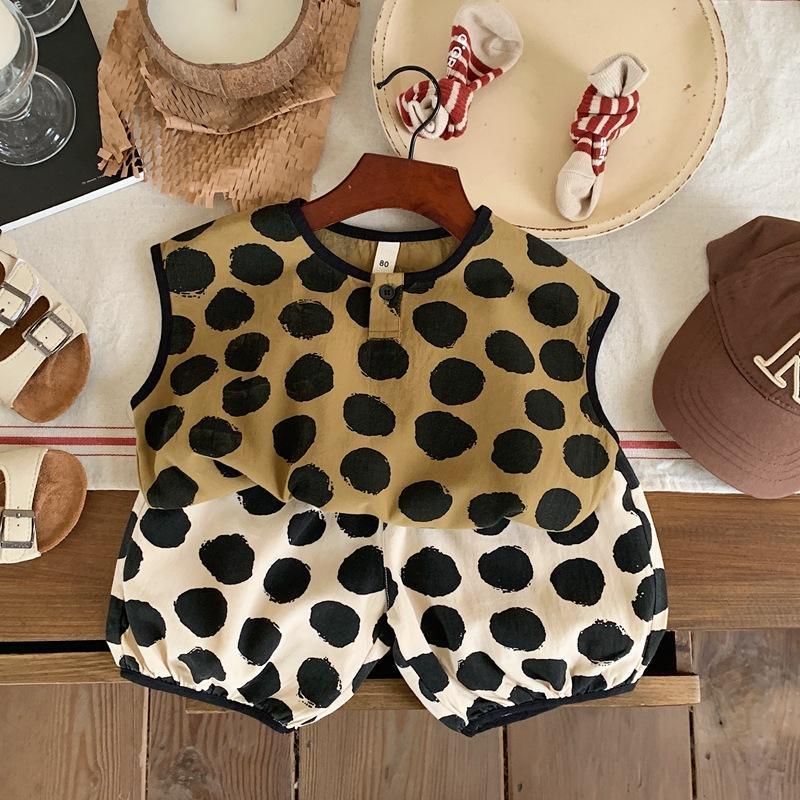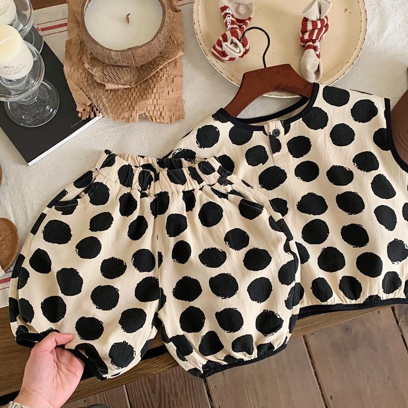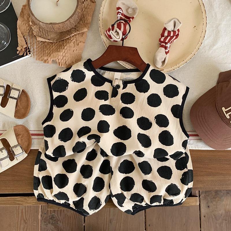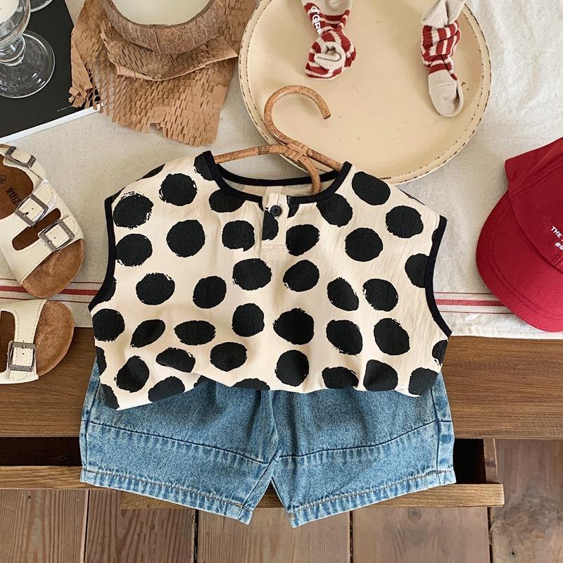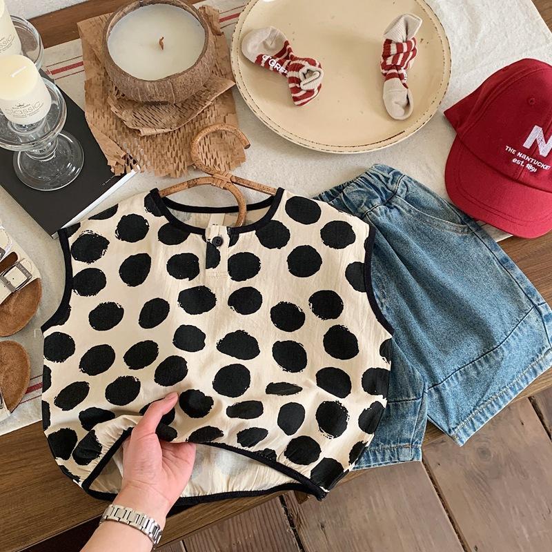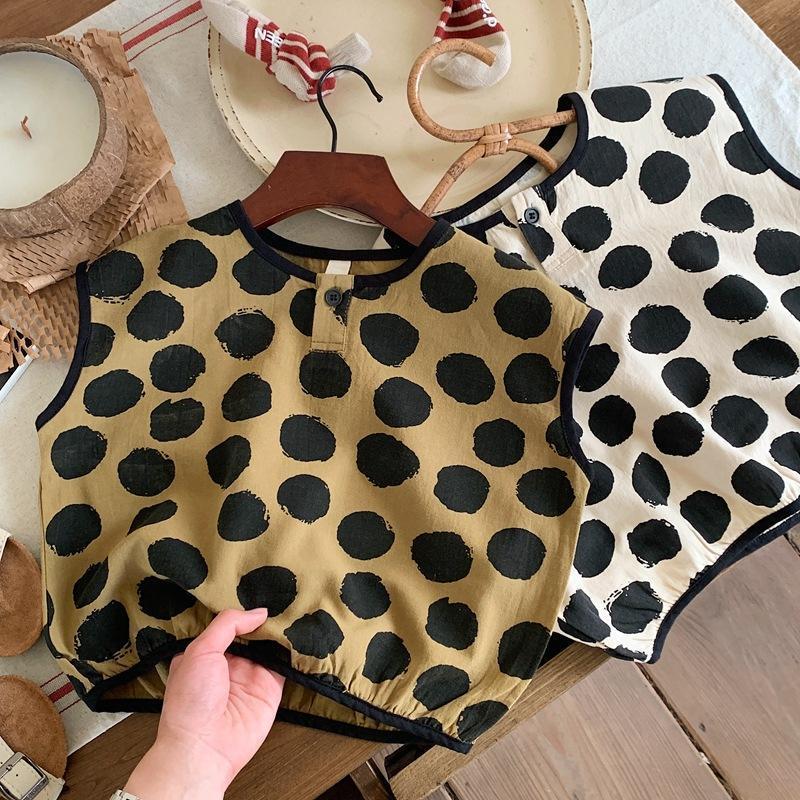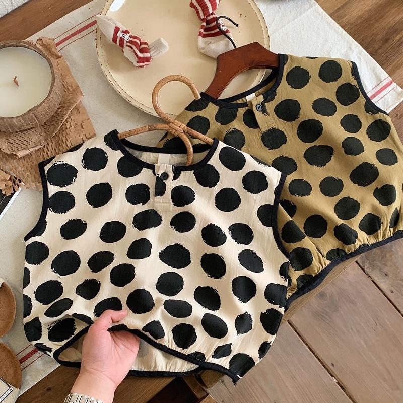 Детская хлопковая рубашка в горошек, мягкая рубашка без рукавов в Корейском стиле, лето 2023