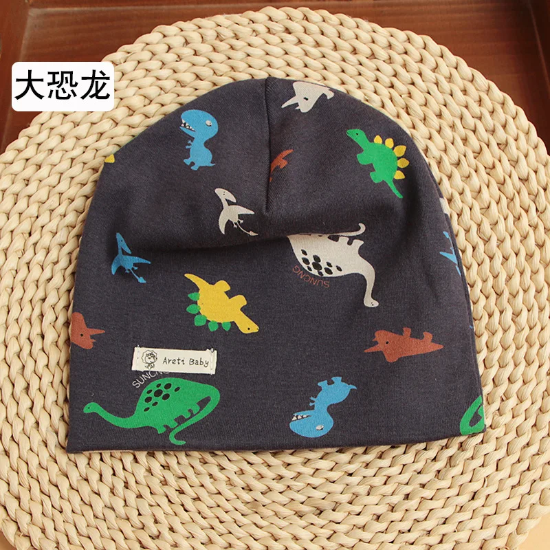Детская хлопковая шапка с рисунком динозавра, на осень/зиму