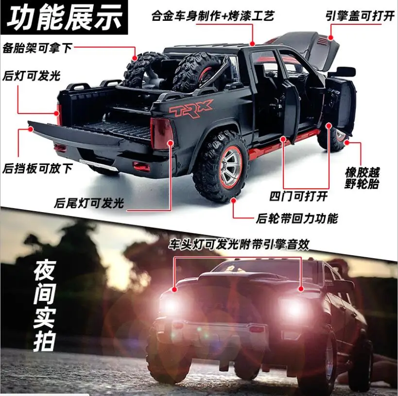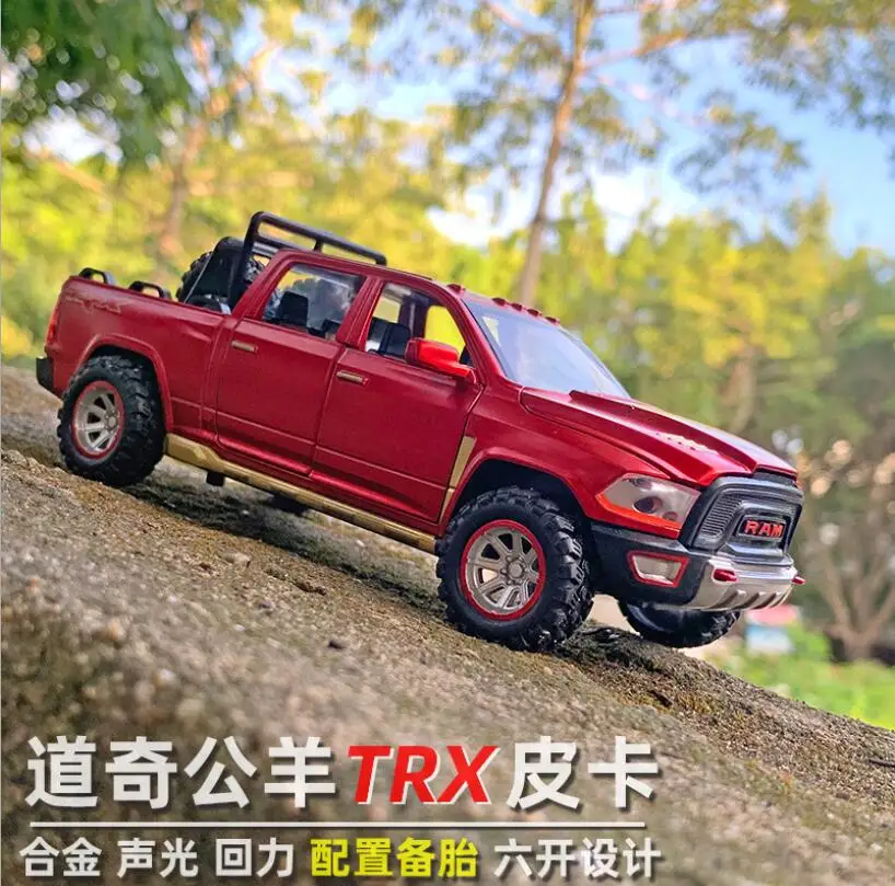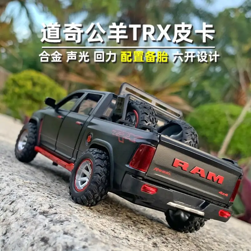 Детская Игрушечная машина для мальчиков, подарки 1:32, модель автомобиля из сплава, новая модель Dodge-Ram TRX, металлическая модель автомобиля со звуком и фотографией
