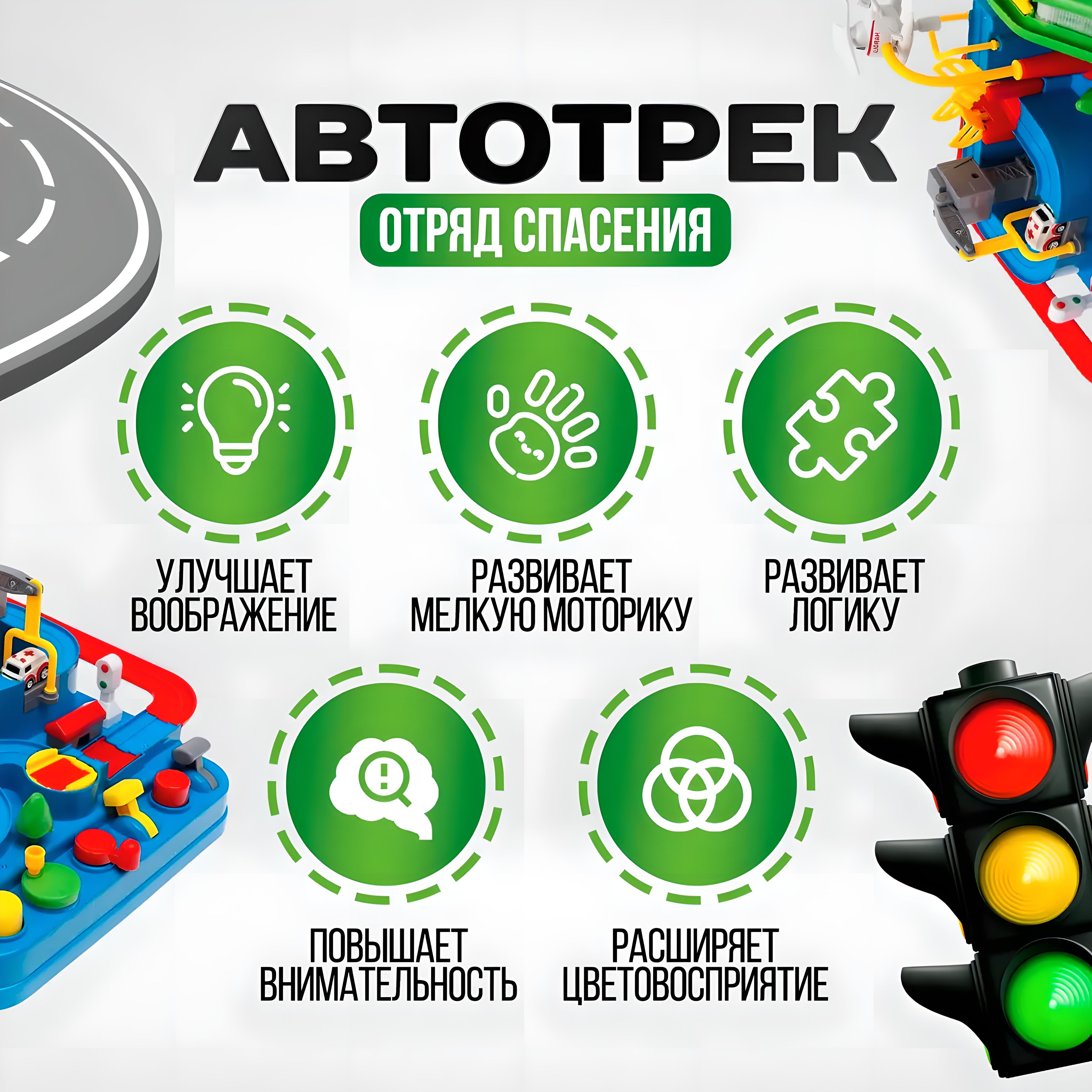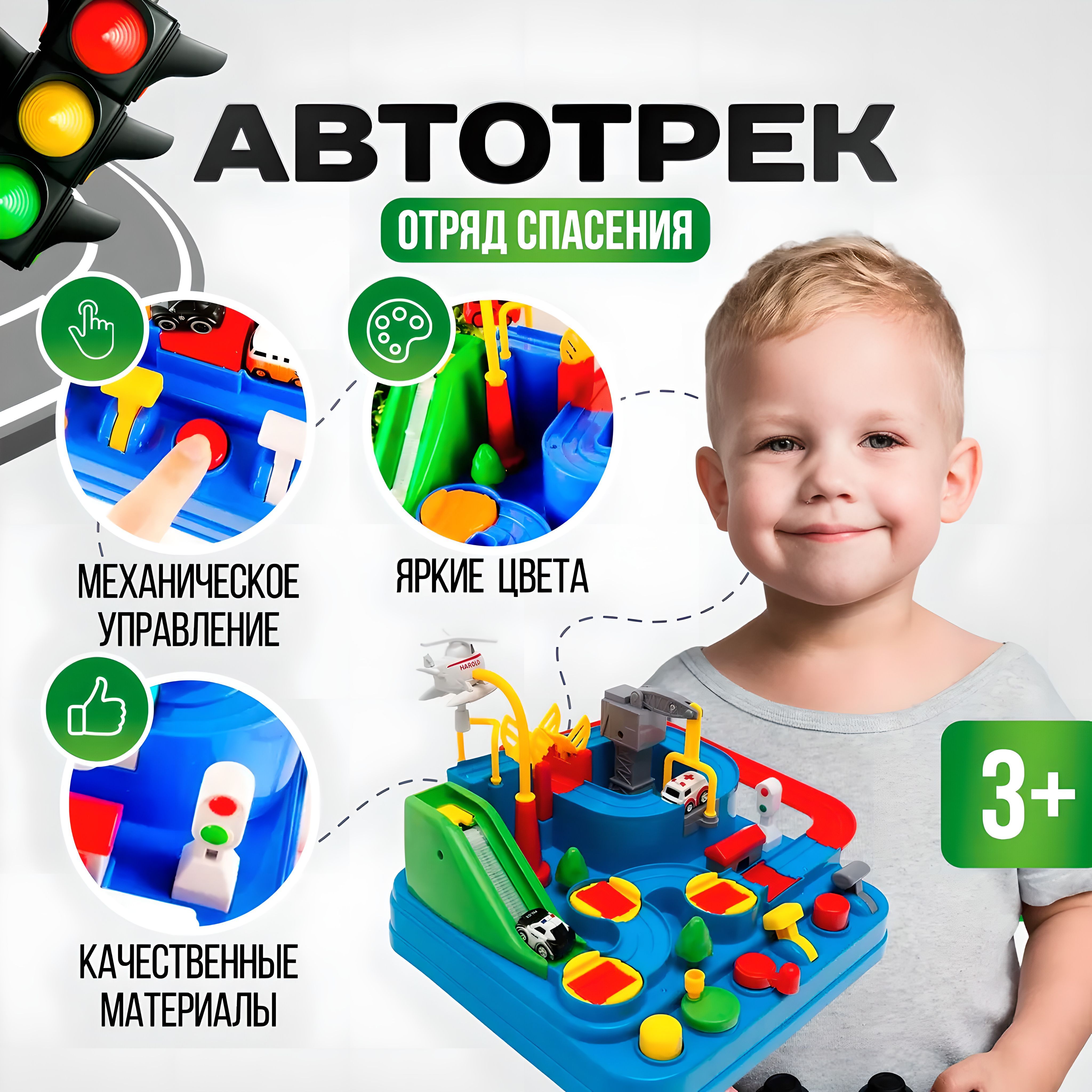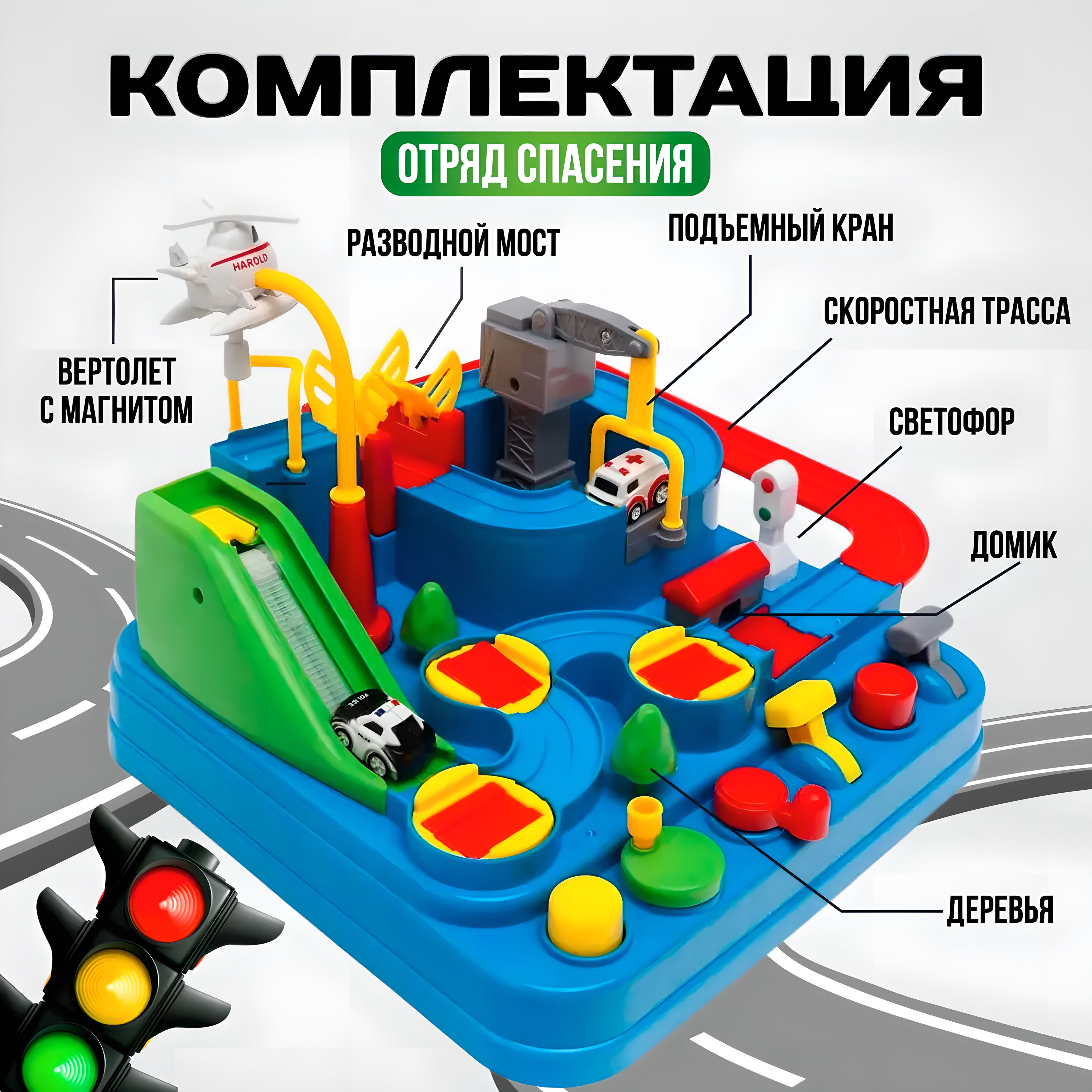 Детская интерактивная игра головоломка "Отряд спасения" с машинками и механическим управлением на кнопках для развития логики, мелкой моторики, у мальчиков и девочек в возрасте от 3 лет