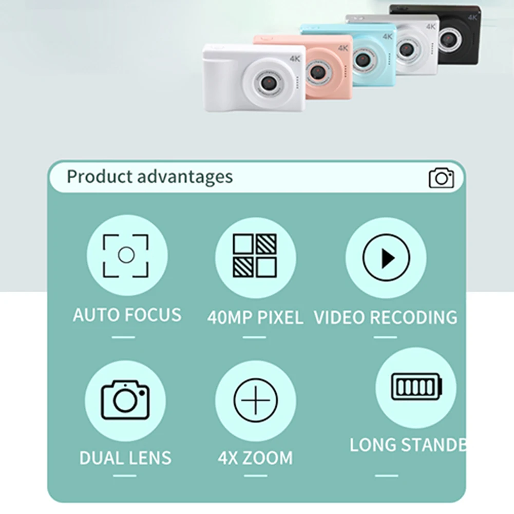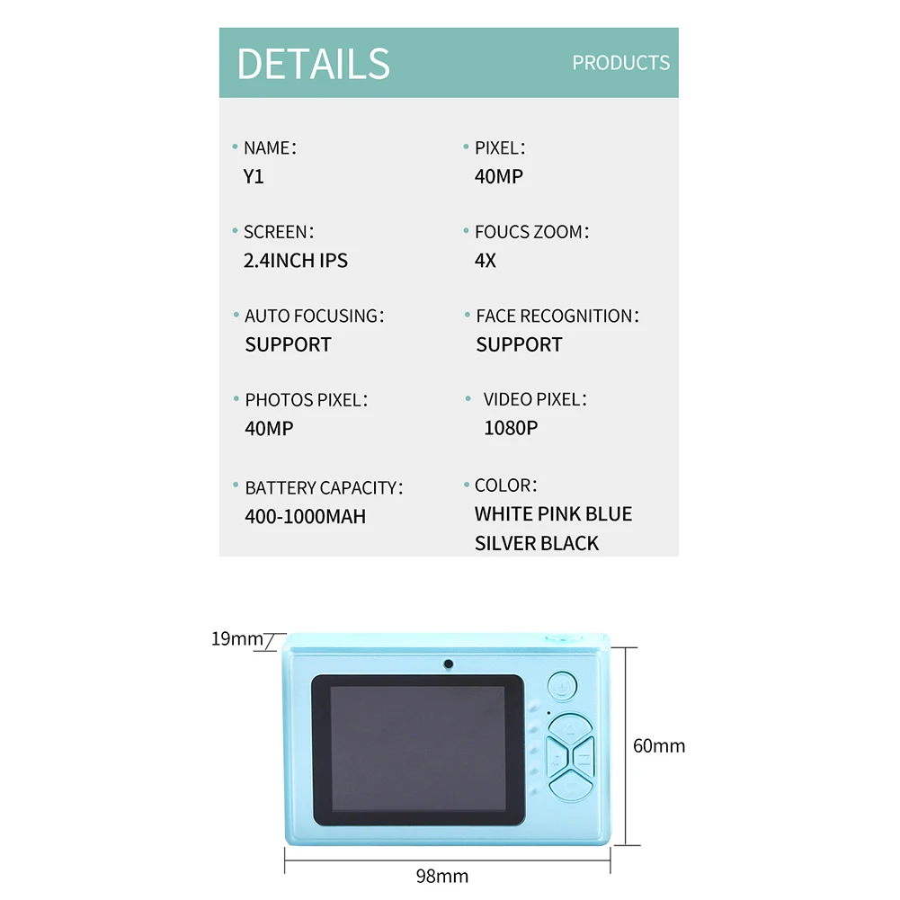 Детская камера 1080P HD цифровые видеокамеры 2,4 дюйма IPS экран 40 МП цифровая камера для детей 3-12 лет для мальчиков и девочек