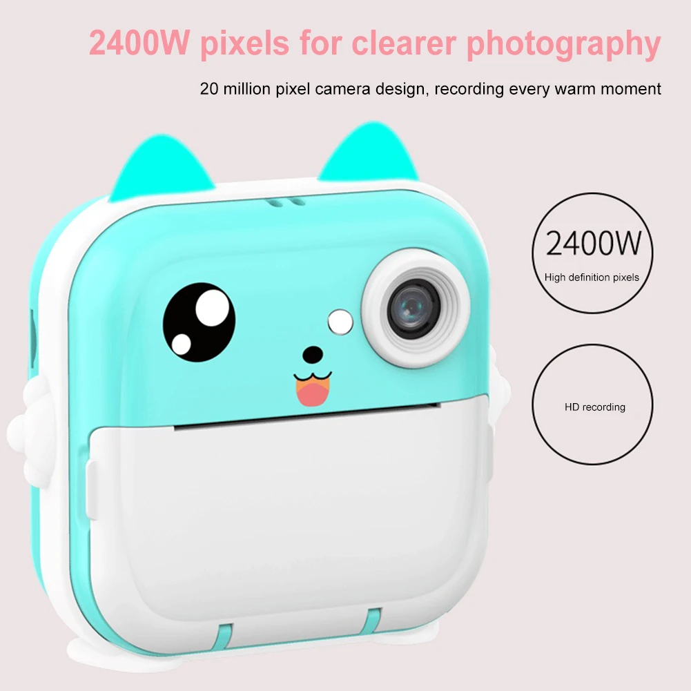 Детская камера для мгновенной печати 2,4-дюймовый IPS-экран Детская цифровая фотокамера Запись видео Снимайте фотографии Подарок на день рождения для девочек и мальчиков