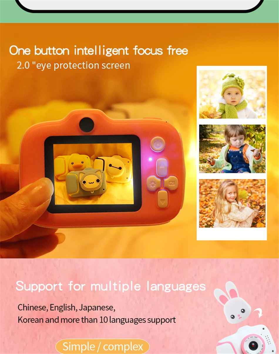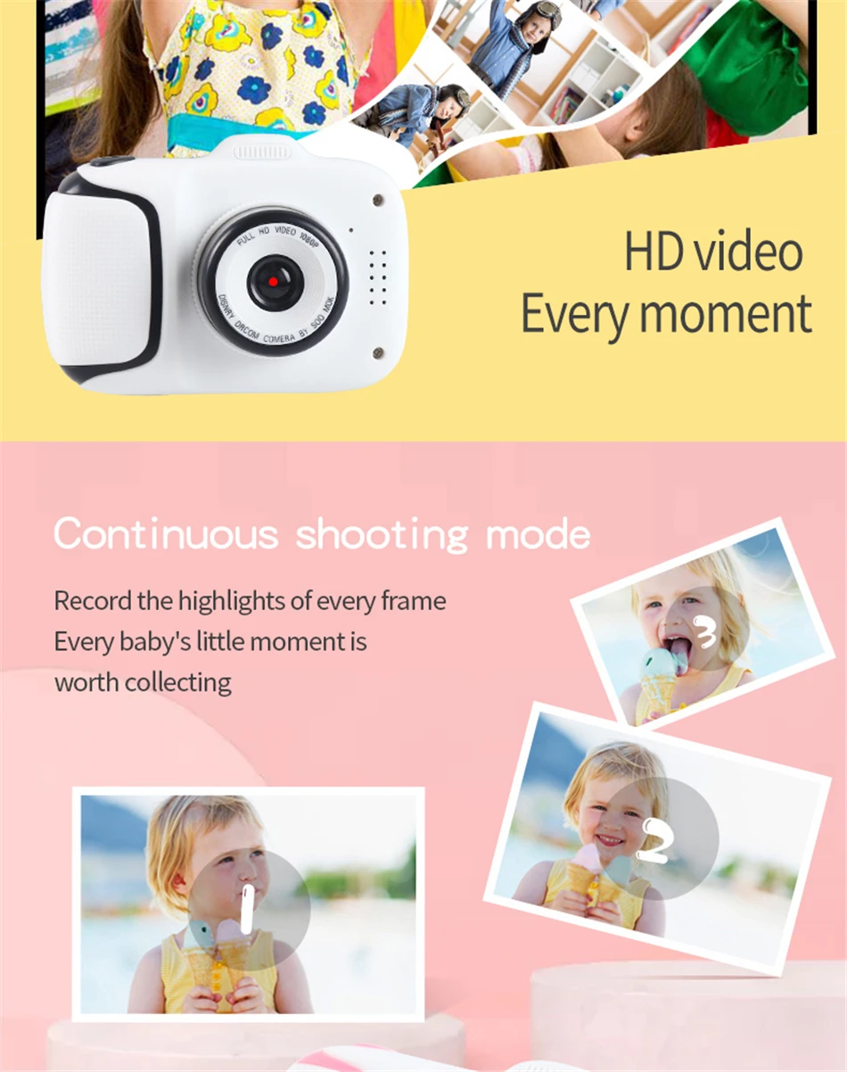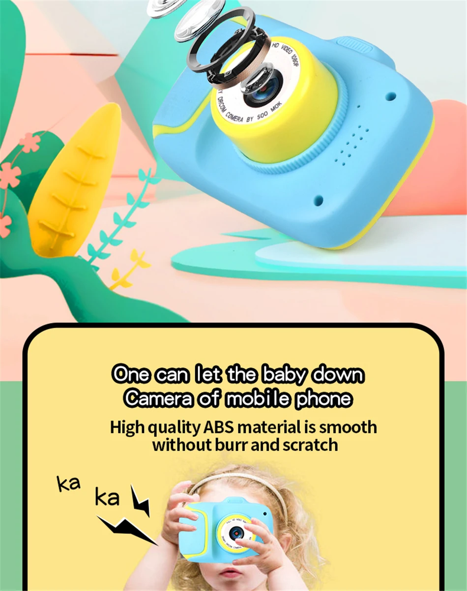1. Ультра-мини размер, подходит для маленьких детей, очаровательные мультфильмы и яркий цветной дизайн, это вдумчивый подарок для детей, это волшебная камера, которая открывает интеллект, чтобы развивать наблюдение за детьми и открывать для себя красоту.