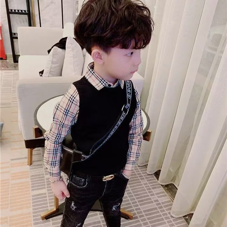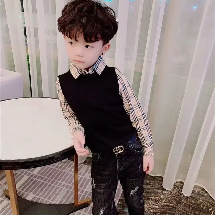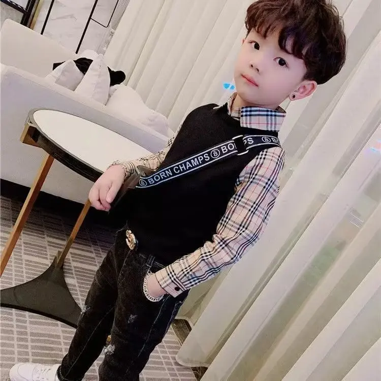 Детская клетчатая футболка, пуловер, хлопковые детские топы, футболки для мальчиков, верхняя одежда с длинным рукавом, модная детская одежда 2023, 3, 4, 5, 6, 7, 8