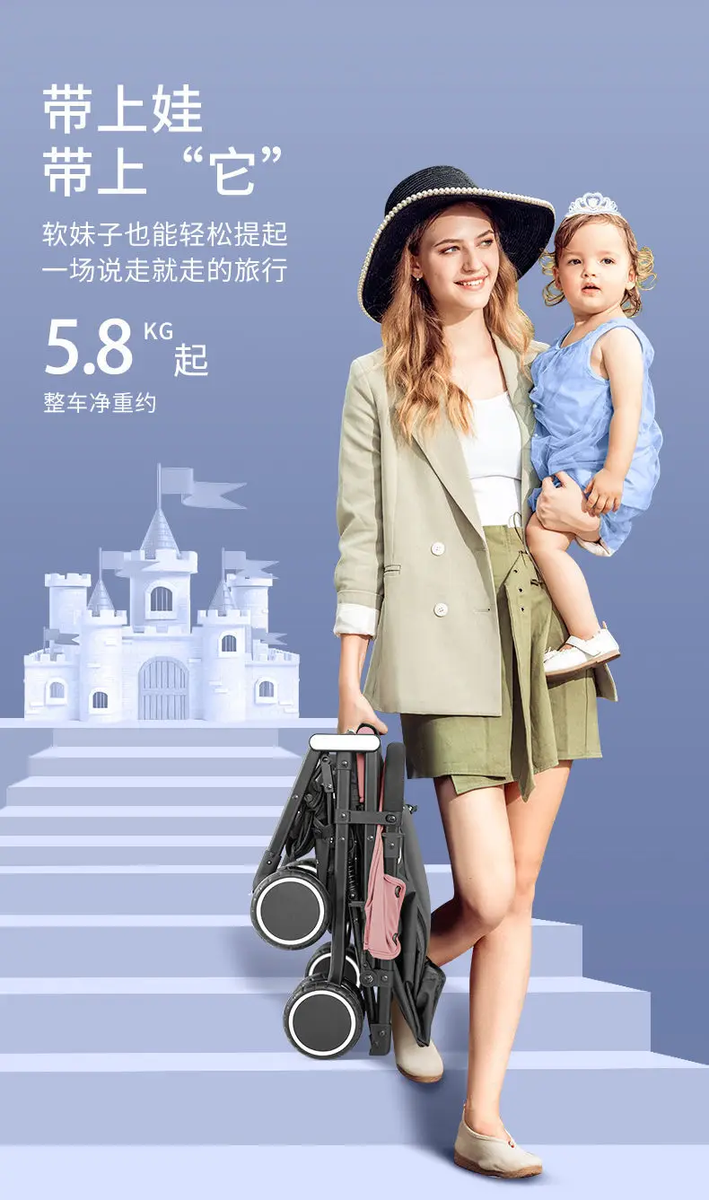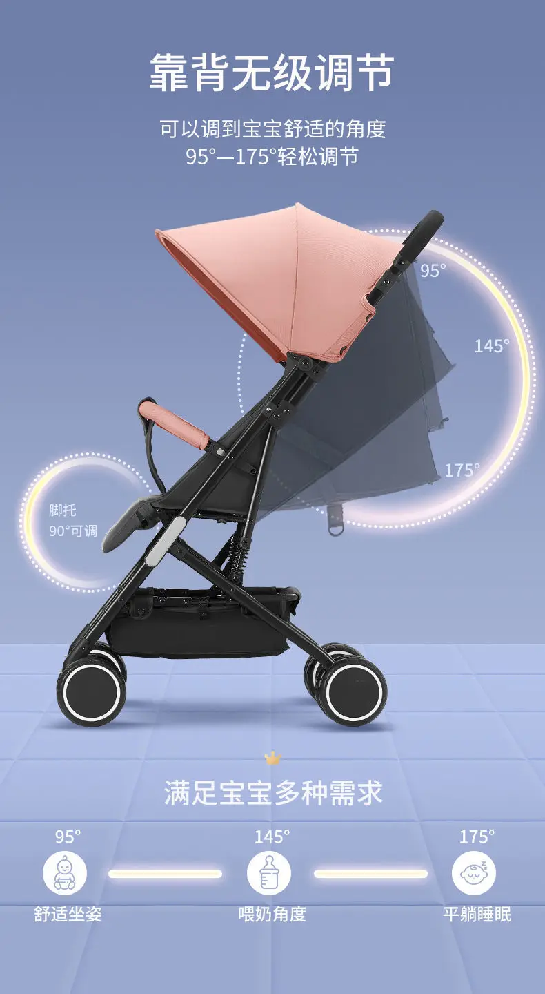 Детская коляска может сидеть и лежать, ультралегкий зонтик, Складная портативная коляска для новорожденных с амортизирующим эффектом
