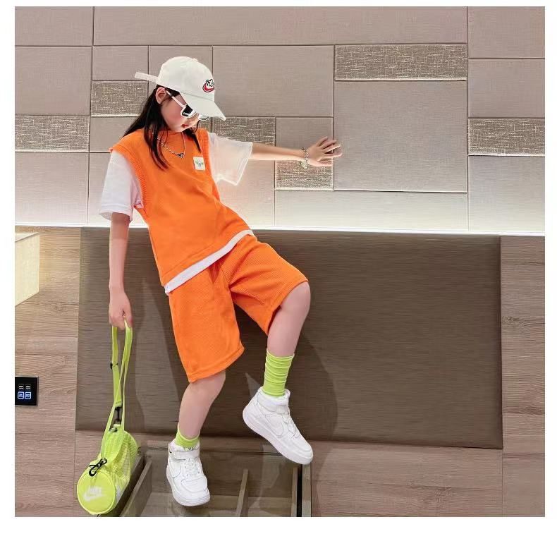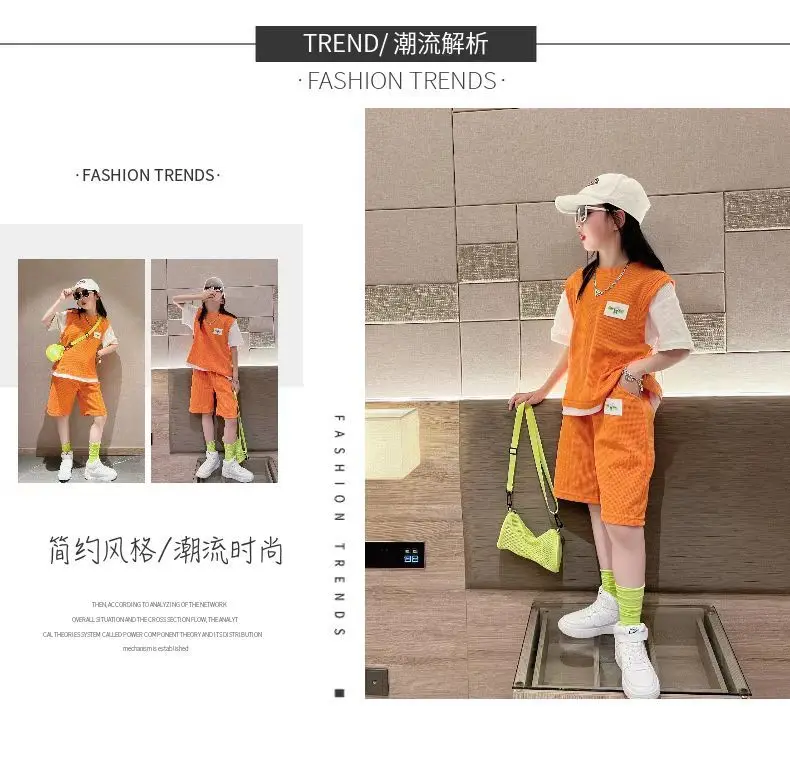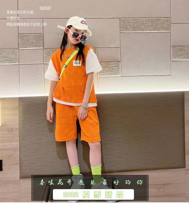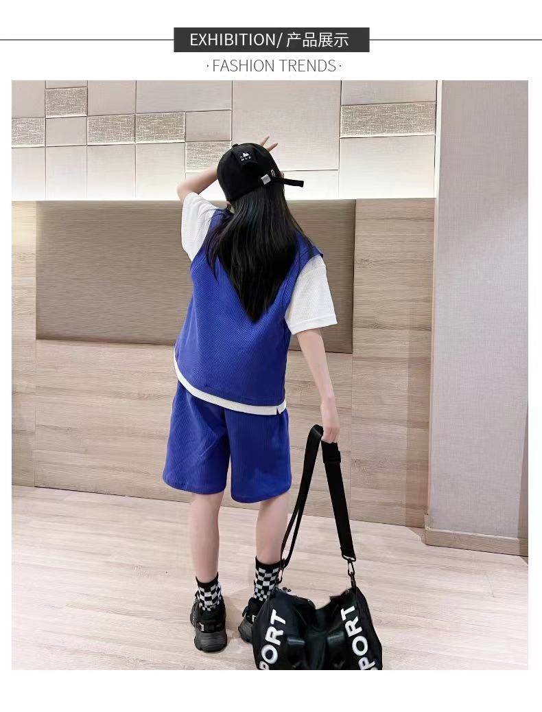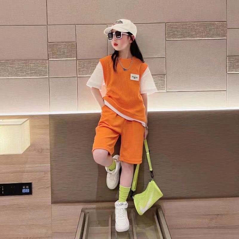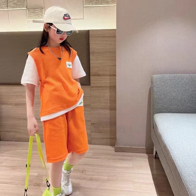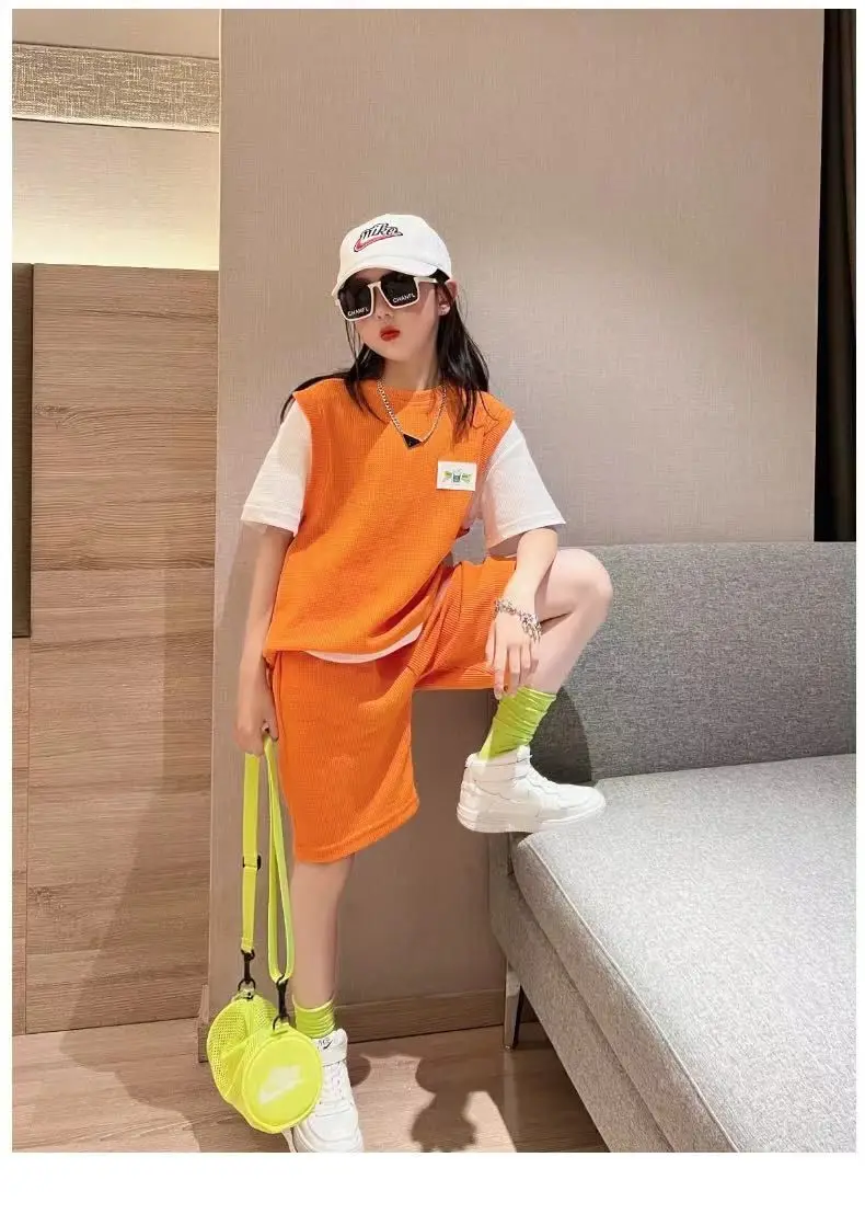 Детская короткая одежда, костюм для девочек, спортивный костюм в стиле пэчворк, футболка с имитацией двух предметов для мальчиков, шорты
