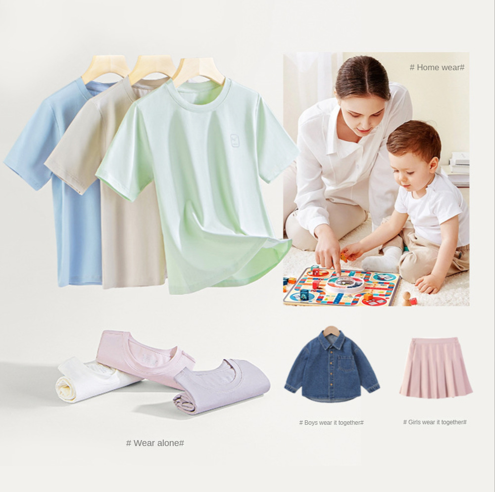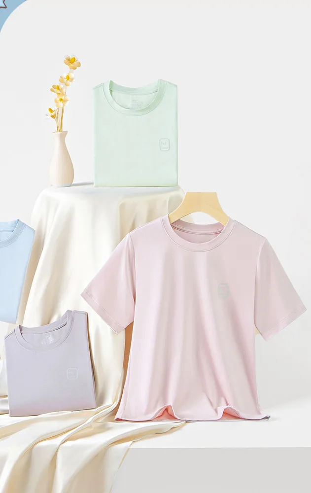 Детская летняя футболка с коротким рукавом и круглым вырезом, из 46% Модала