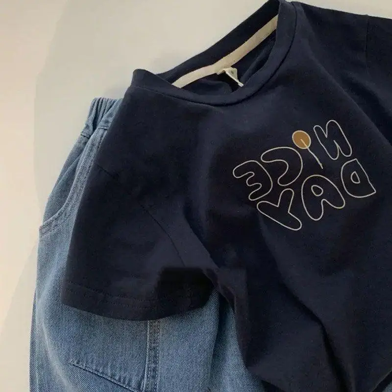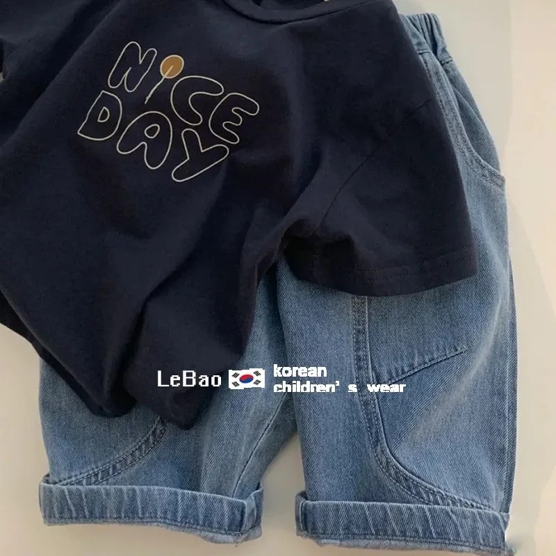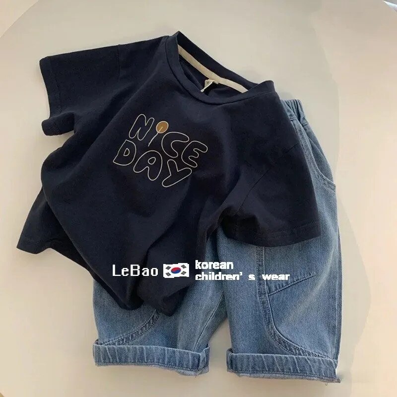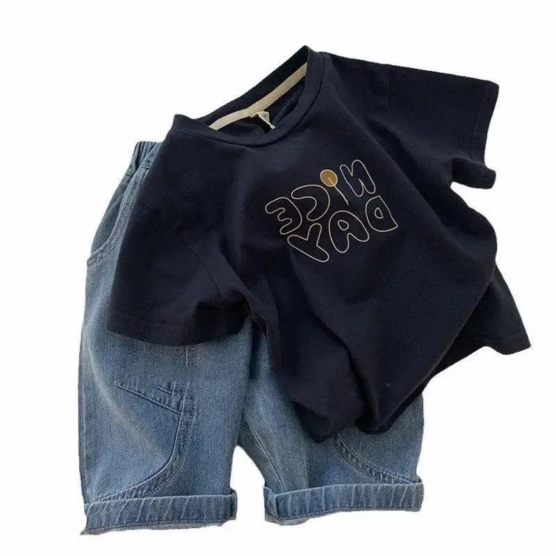 Детская летняя одежда для мальчиков хлопковый комплект с коротким рукавом Новинка для детей крутая и красивая Повседневная футболка и шорты комплект из 2 предметов