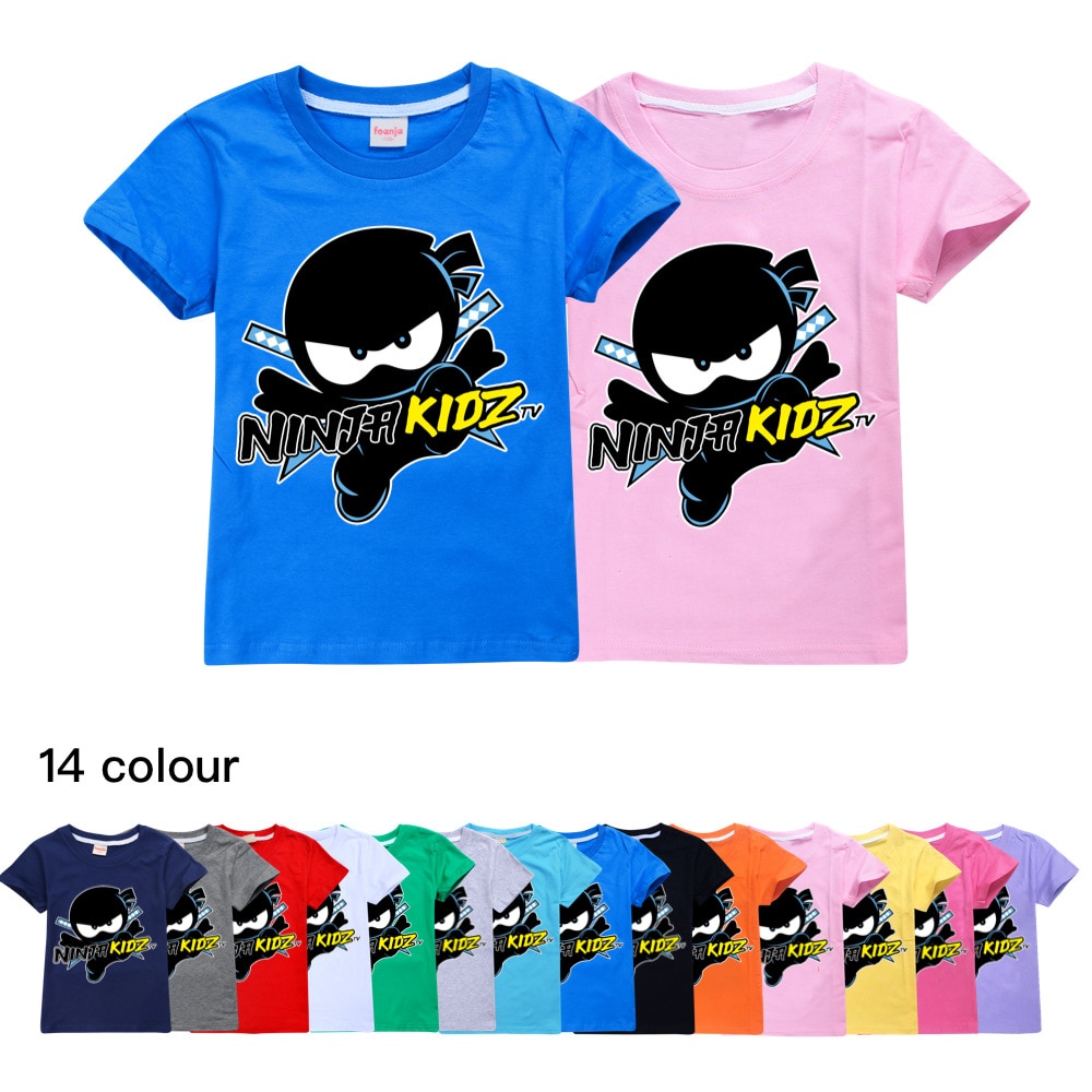 Детская летняя одежда NINJA KIDZ для маленьких девочек, 2021 детской хлопковой футболки для мальчиков, бутиковая детская одежда, топы с круглым вырезом для мальчиков, рубашка