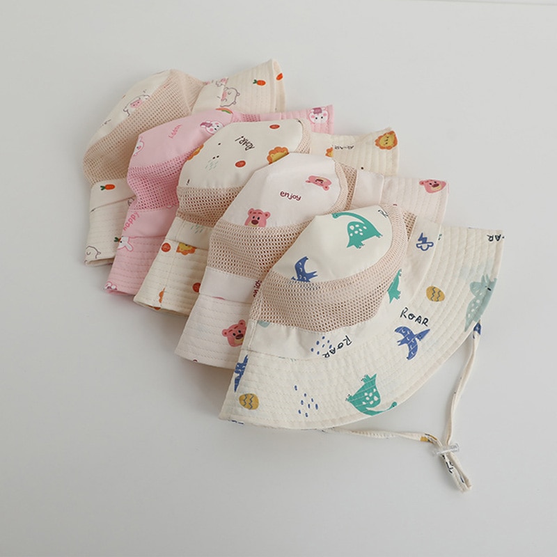 Детская летняя шляпа Мультфильм печати сетки ведро шляпы