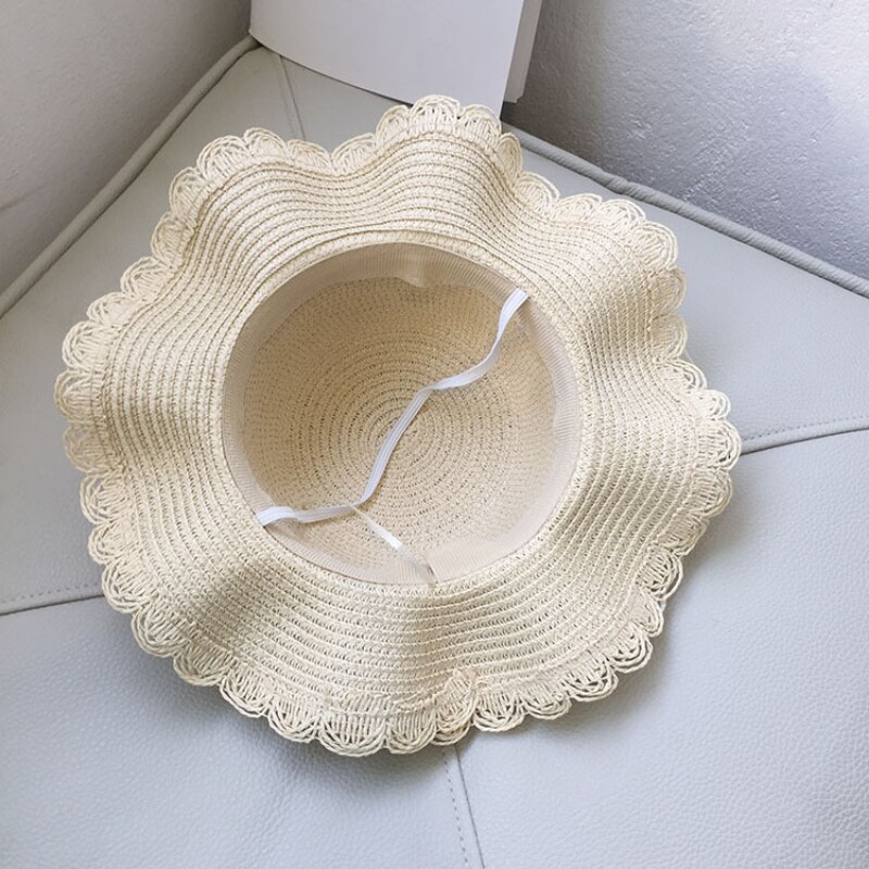 Детская летняя шляпа с солнцезащитным козырьком и жемчугом, кружевная соломенная шляпа для маленьких девочек, детские солнцезащитные пляжные шляпы, реквизит для детской фотографии, шапка для новорожденных