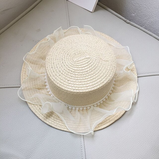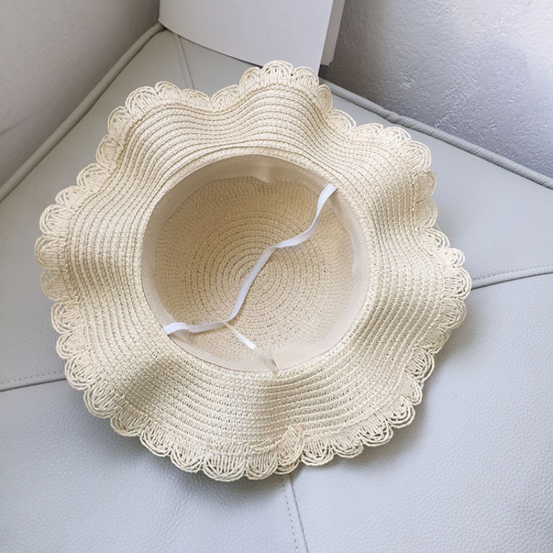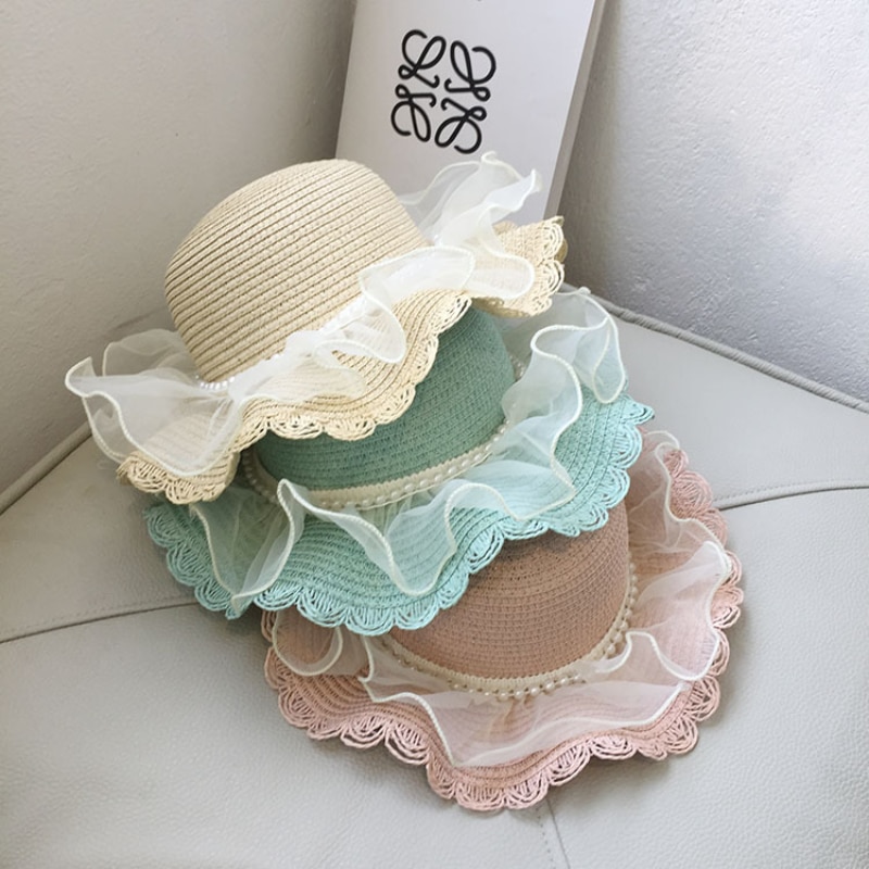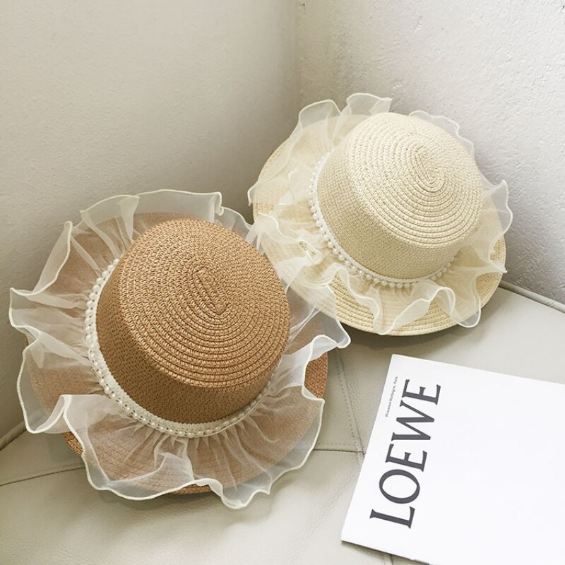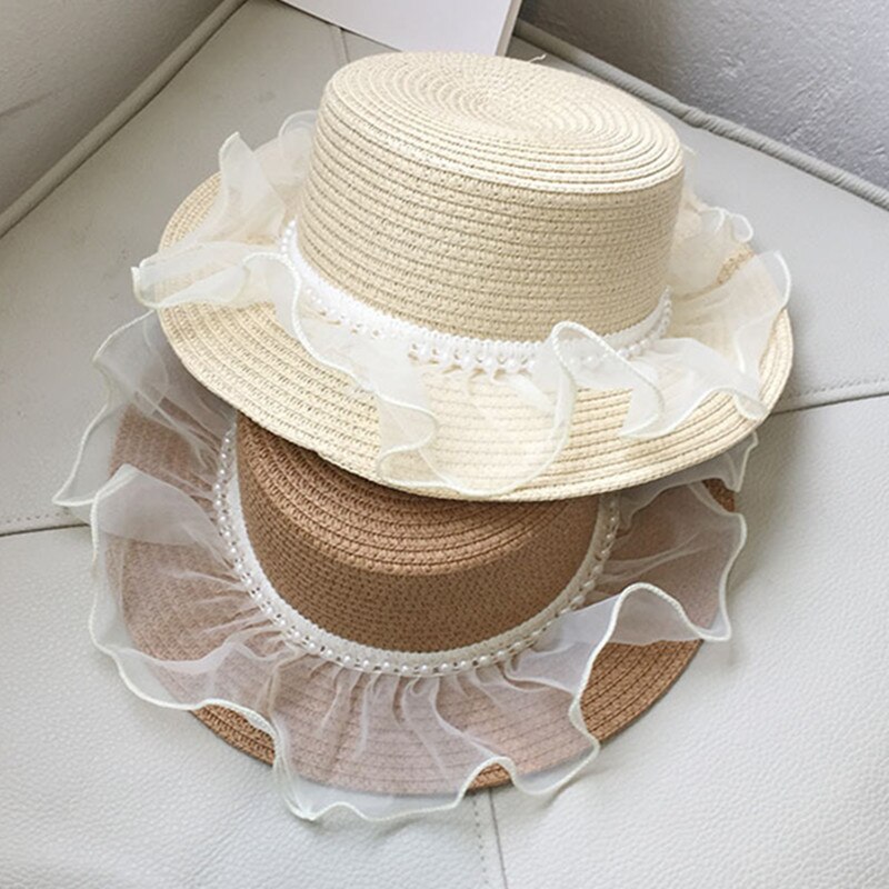 Детская летняя шляпа с солнцезащитным козырьком и жемчугом, кружевная соломенная шляпа для маленьких девочек, детский реквизит для фотосъемки