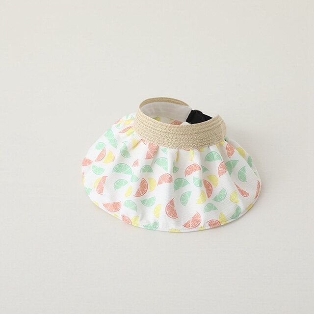 Точечный/лимонный принт, пустой верх помогает быстро высушить пот, широкие поля могут блокировать солнечный свет и ультрафиолетовые лучи, избегать солнечных ожогов на лице, защищать глаза и кожу вашего ребенка, не блокируя обзор.