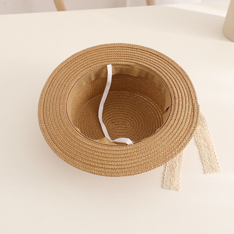 Детская летняя соломенная шляпа, кружевные шляпы с бантом и лентой для девочек, детская Панама, пляжная шляпа от солнца для улицы