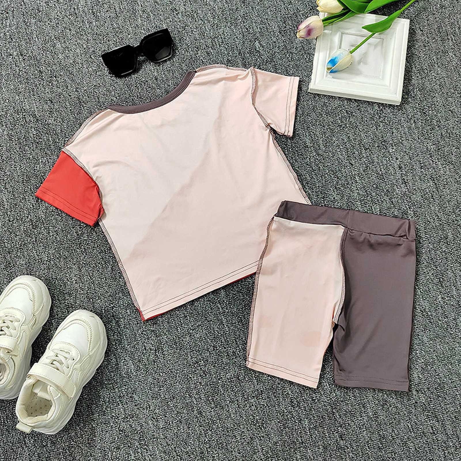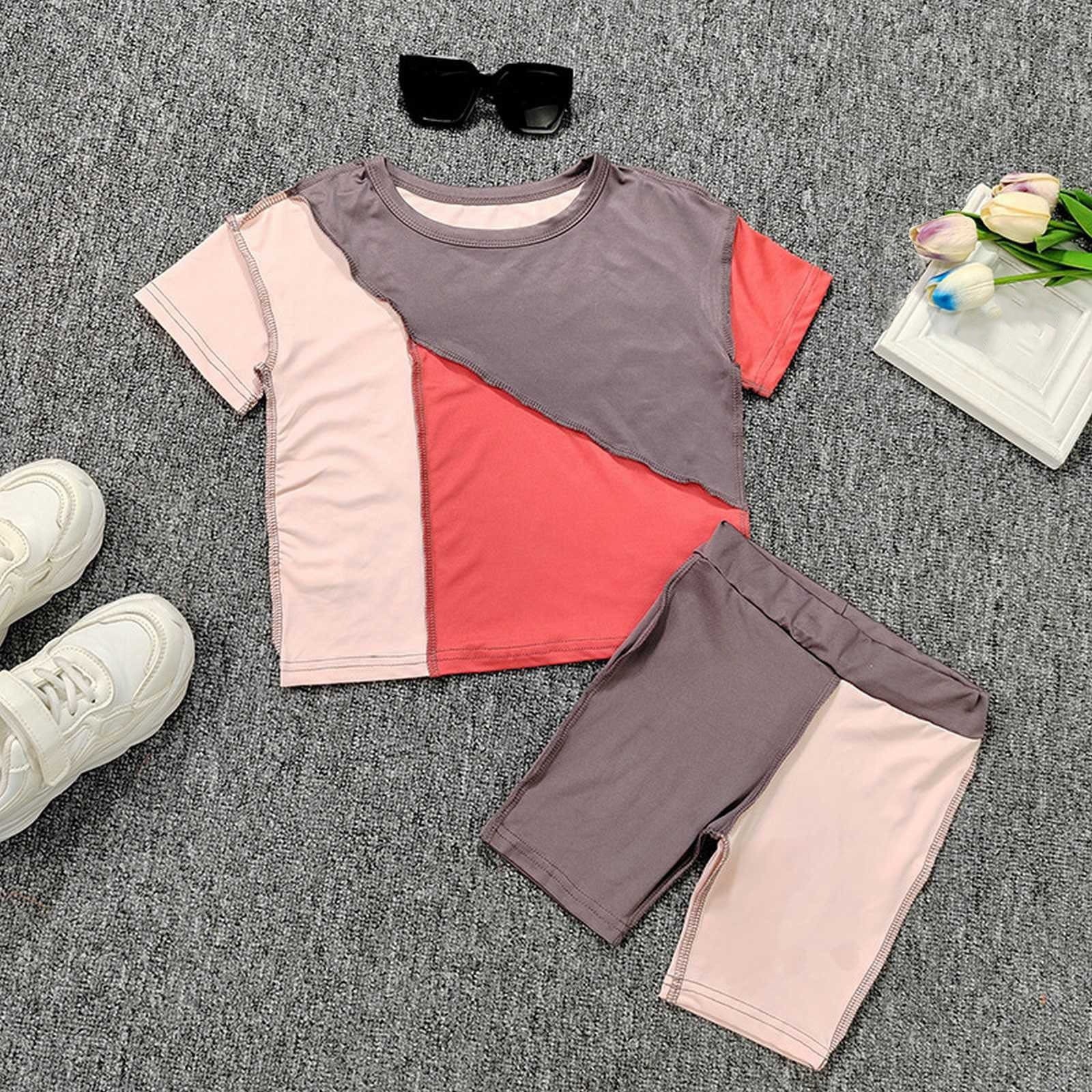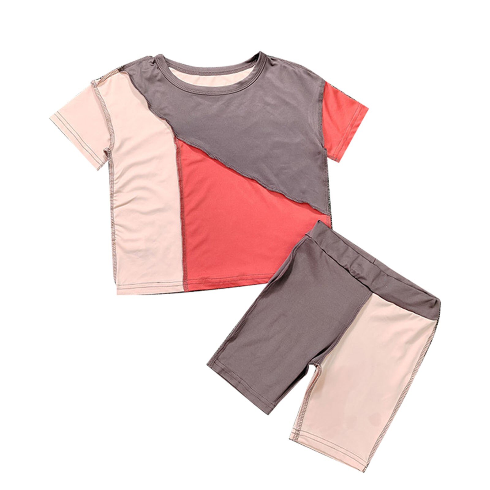 Подходящие по цвету леггинсы с короткими рукавами для девочек, двухкомпонентный дизайн костюма, подходящий для повседневных путешествий и путешествий