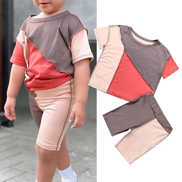 Детская Одежда, цветные леггинсы с короткими рукавами, комбинированный дизайн, подходит для ежедневных поездок и путешествий