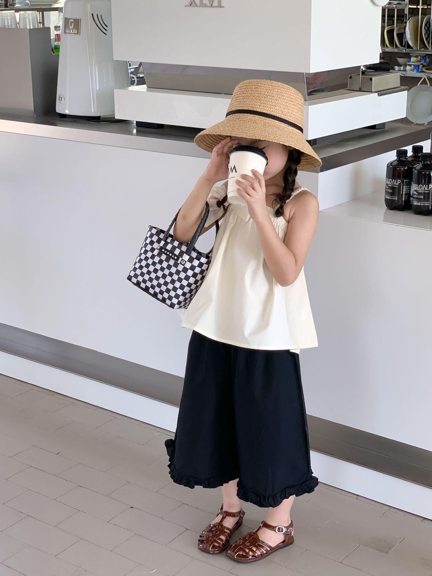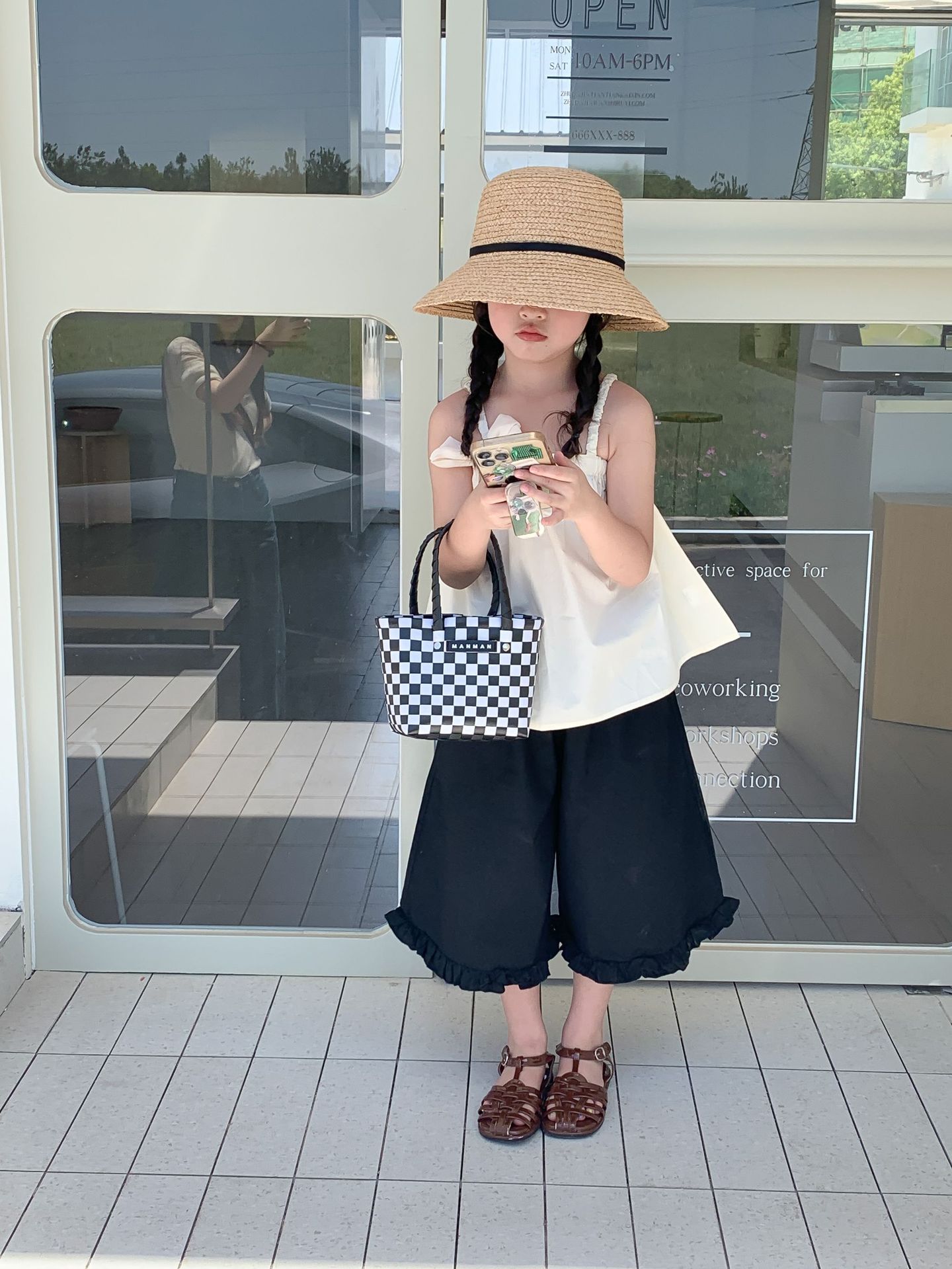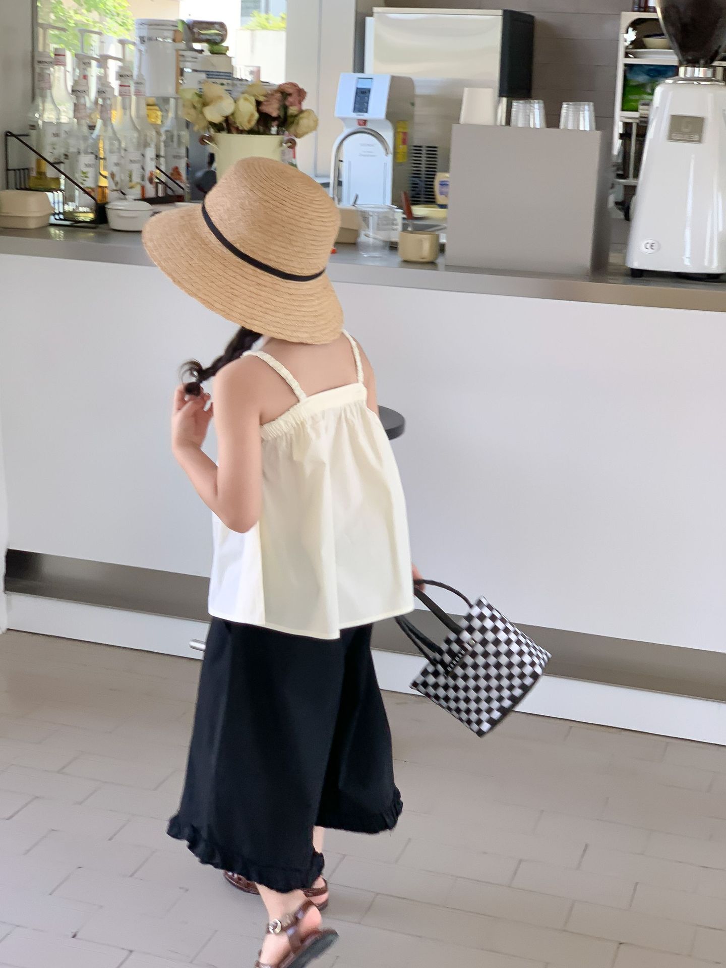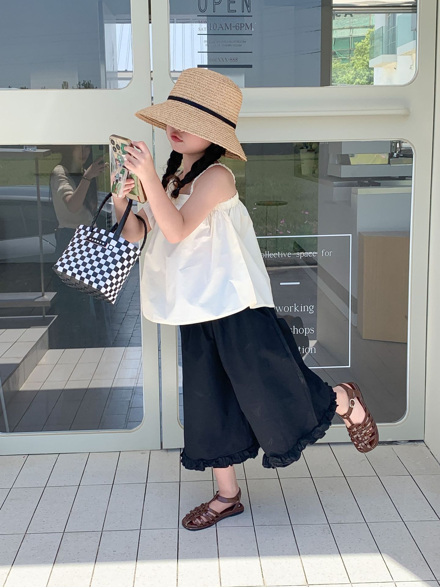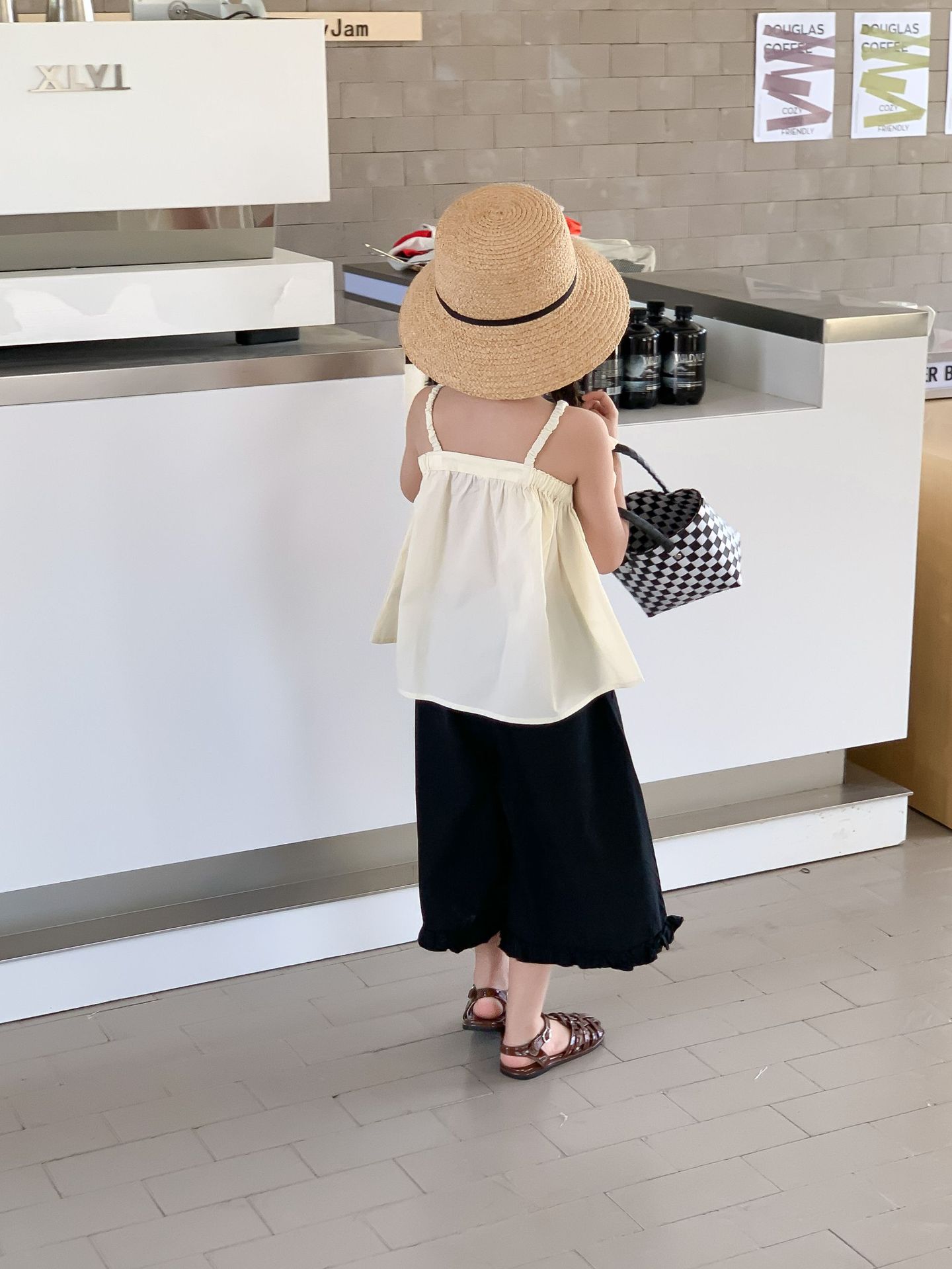 Детская одежда для девочек, летняя рубашка с бантом и подтяжками, кружевные укороченные брюки с широкими штанинами, костюм в Корейском стиле, повседневный комплект из двух предметов для детей