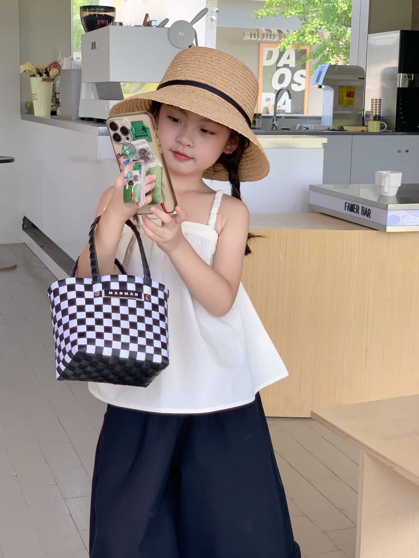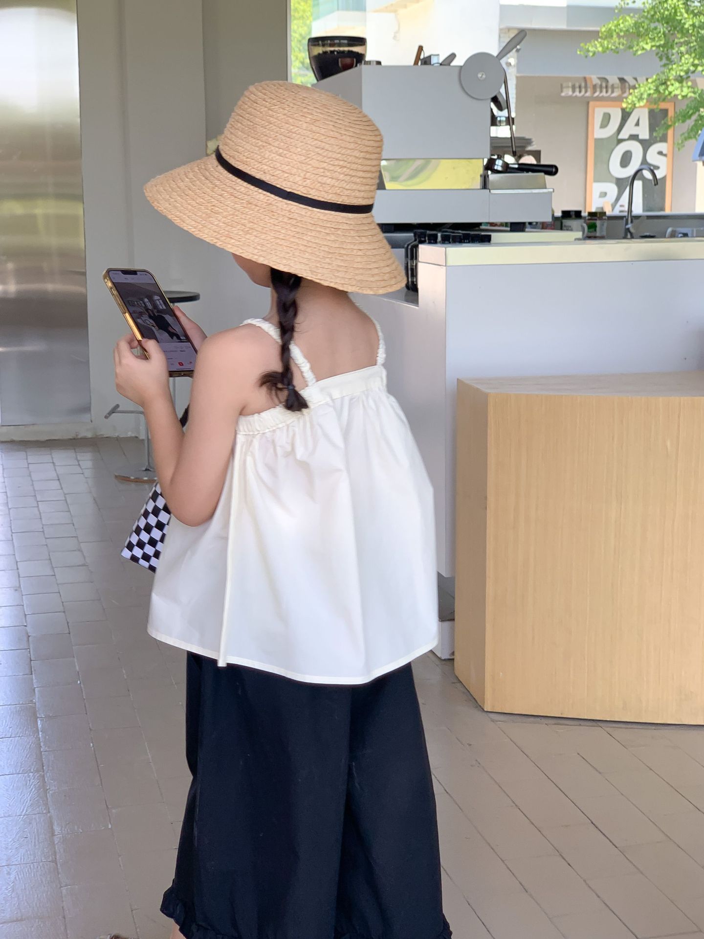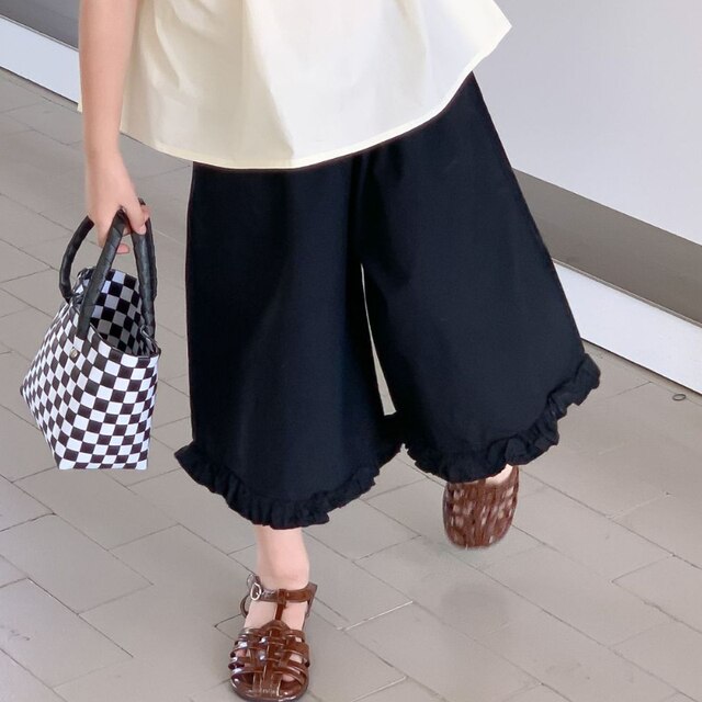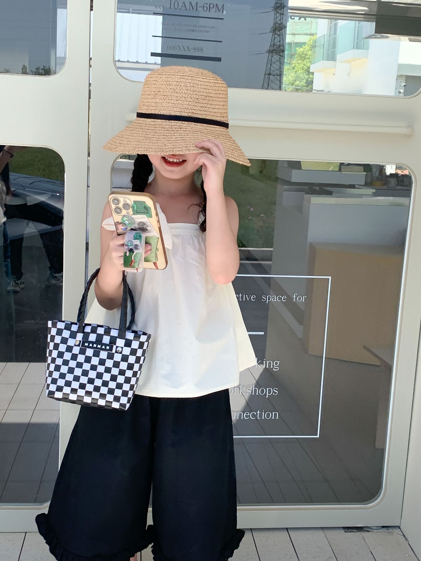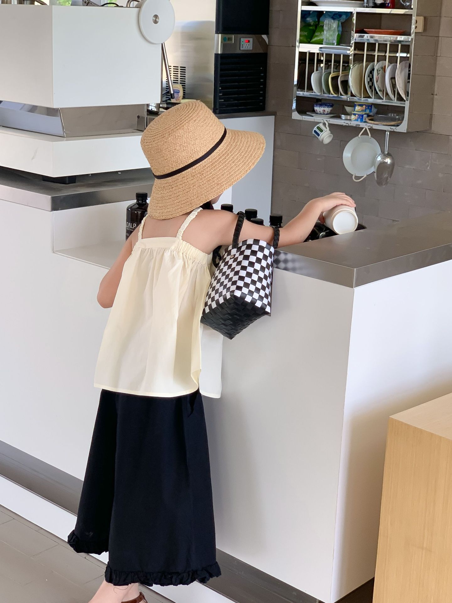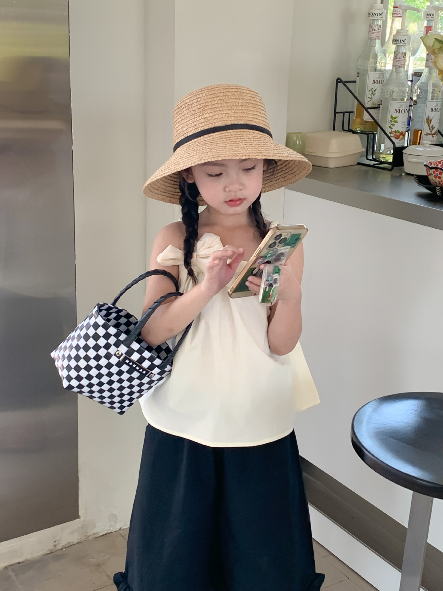 Детская одежда для девочек, летняя рубашка с бантом и подтяжками, кружевные укороченные брюки с широкими штанинами, костюм в Корейском стиле, повседневный комплект из двух предметов для детей