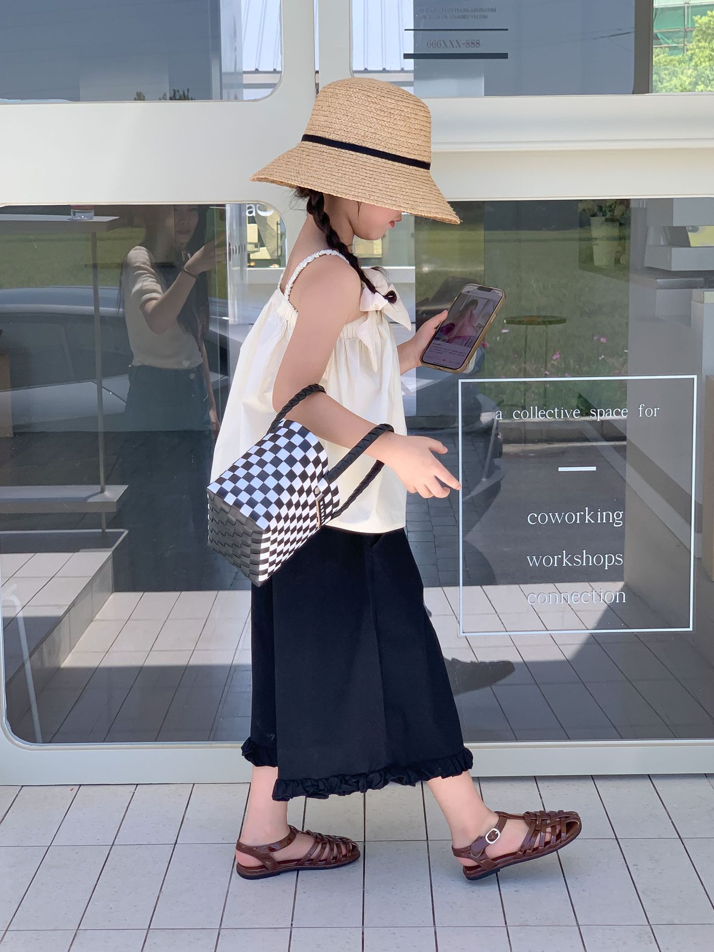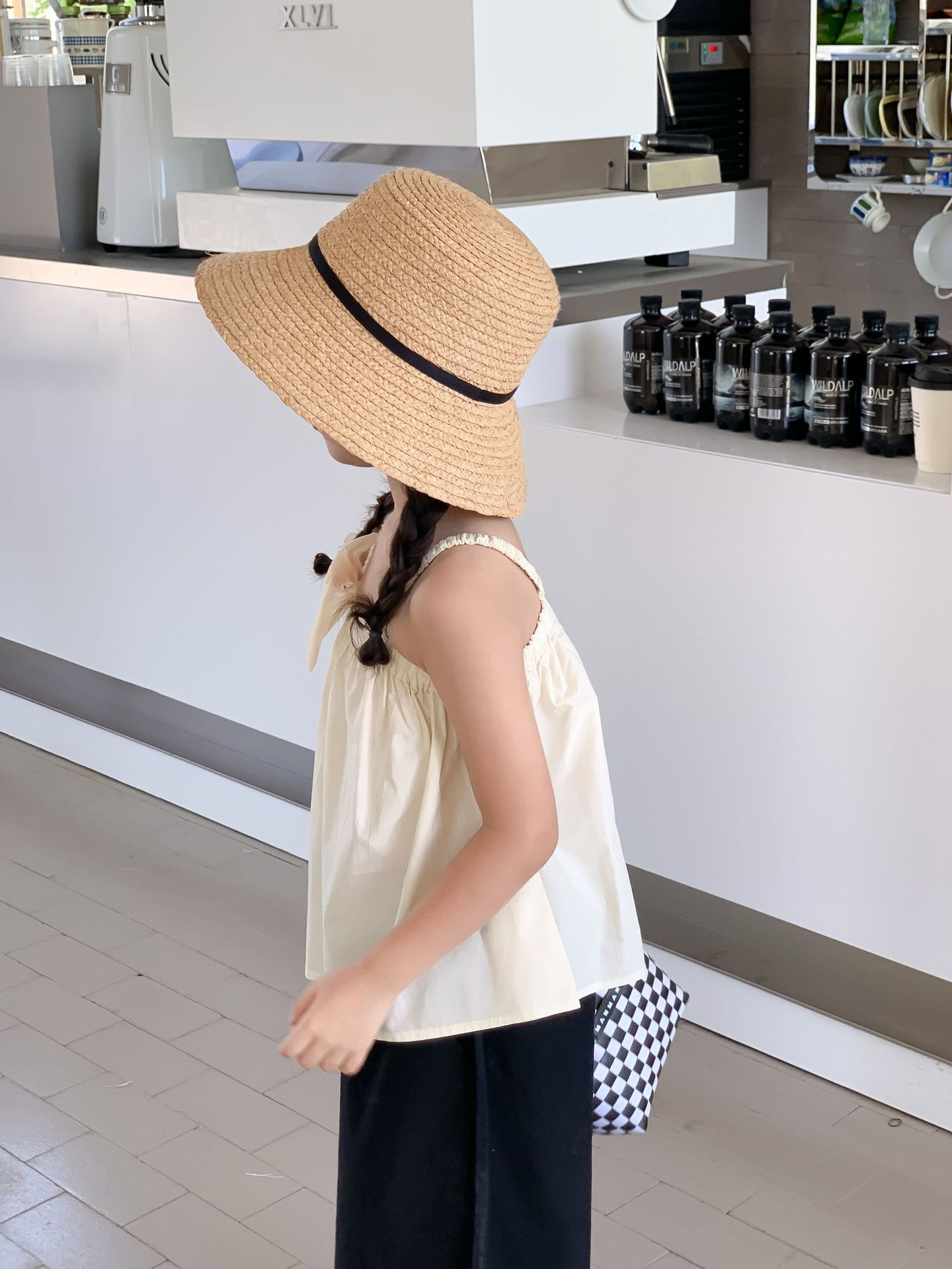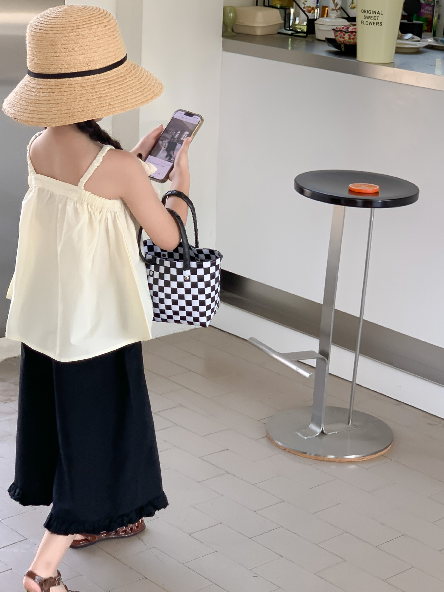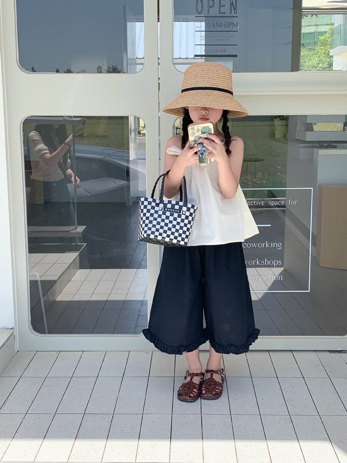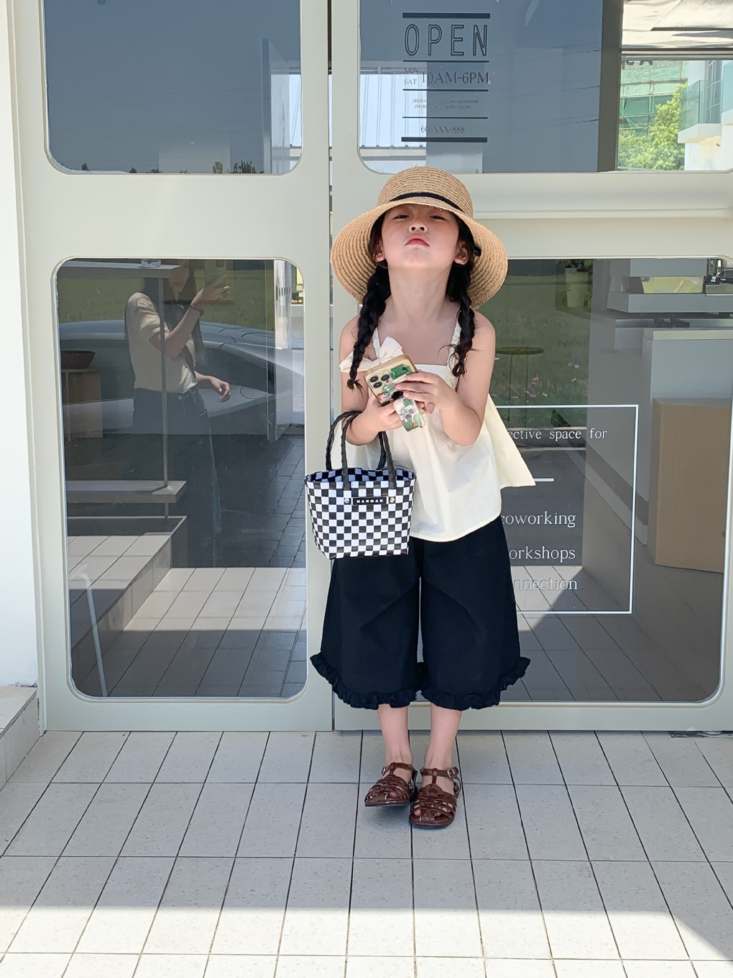 Детская одежда для девочек, летняя рубашка с бантом и подтяжками, кружевные укороченные брюки с широкими штанинами, костюм в Корейском стиле, повседневный комплект из двух предметов для детей